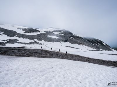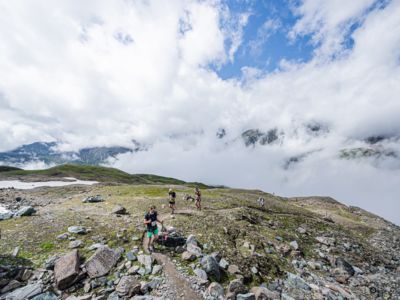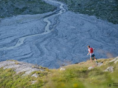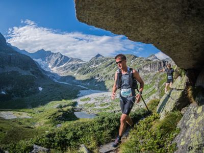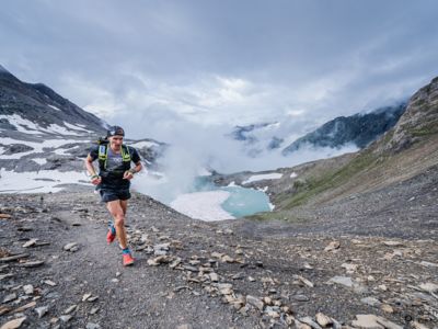 Beim Großglockner-Ultratrail erlebe ich das dann auch selbst. Nach der Überschreitung des Kapruner Törls geht es noch fast 2000 Höhenmeter hinab nach Kaprun. Anfangs über steile Geröll- und Schneefelder, dann entlang von Stauseen und durch den Bergwald. Ich habe kurz hinter dem Dach meines Trailrun-Abenteuers am Kapruner Törl einfach neben dem Pfad gewartet, bis die meisten der schnellen Leute vorbei waren. Und dann den langen Weg ins Tal in dem Tempo absolviert, das meine vom ersten steilen, schnellen Abstieg geschundenen Beine noch hergaben. Zwar anstrengend, aber ganz ohne Stress und Druck. Genau wie es mir Rosanna Buchauer und Daniel Jung empfohlen hatten.