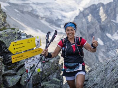 Im Anblick der faszinierenden Gletscher und der vielen über 3000 Meter hohen Gipfel am Großglockner gehen mir die Worte durch den Kopf, die mir Rosanna Buchauer am Tag vor dem Rennen mit auf den Weg gegeben hatte. „Als Einsteiger solltest du vor allem genießen und dich nicht unter Druck setzen“, hatte mir die Profiläuferin aus dem Dynafit-Team geraten. Sie sollte am Ende als dritte Frau das 57-Kilometer-Rennen beim Großglockner-Ultratrail nach gut sieben Stunden beenden. Ich werde am Ende in der gleichen Zeit die 35 Kilometer des „Einsteigerrennens“ absolviert haben.