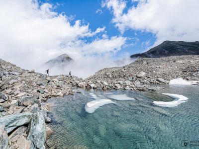 Aber dann ist die erste Passage geschafft und es geht wieder bergauf – von 2000 Metern auf den Höhepunkt der Strecke. Das Kapruner Törl ist mit 2639 Metern fast so hoch wie der Watzmann. Und das ist immerhin der zweithöchste Berg in Deutschland. Aber bergauf kann ich. Das ist in der Höhe zwar anstrengend, aber beherrschbar. Und der Ausblick auf die Gletscherwelt der nördlichen Glocknergruppe belohnt für alle Strapazen.