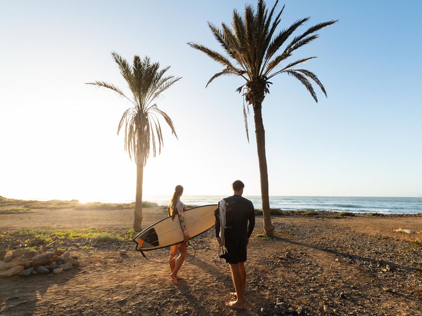 Die konstanten Passatwinde machen die Insel zu einem der besten Reviere Europas für Board-Sportarten. Surfer, Stand-up-Paddler und Open-Water-Schwimmer nutzen die ganzjährig milden Temperaturen des Atlantiks für ihr Training – selbst im Winter sinken die Wassertemperaturen selten unter 19 Grad.