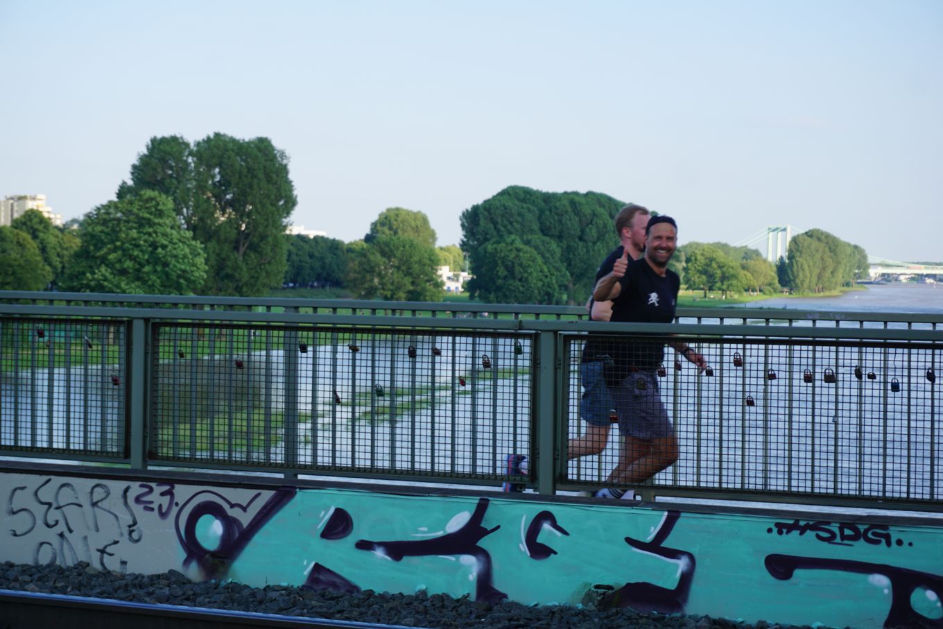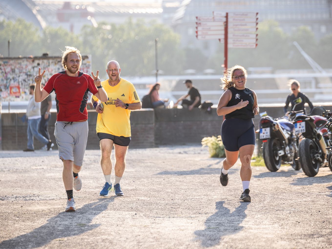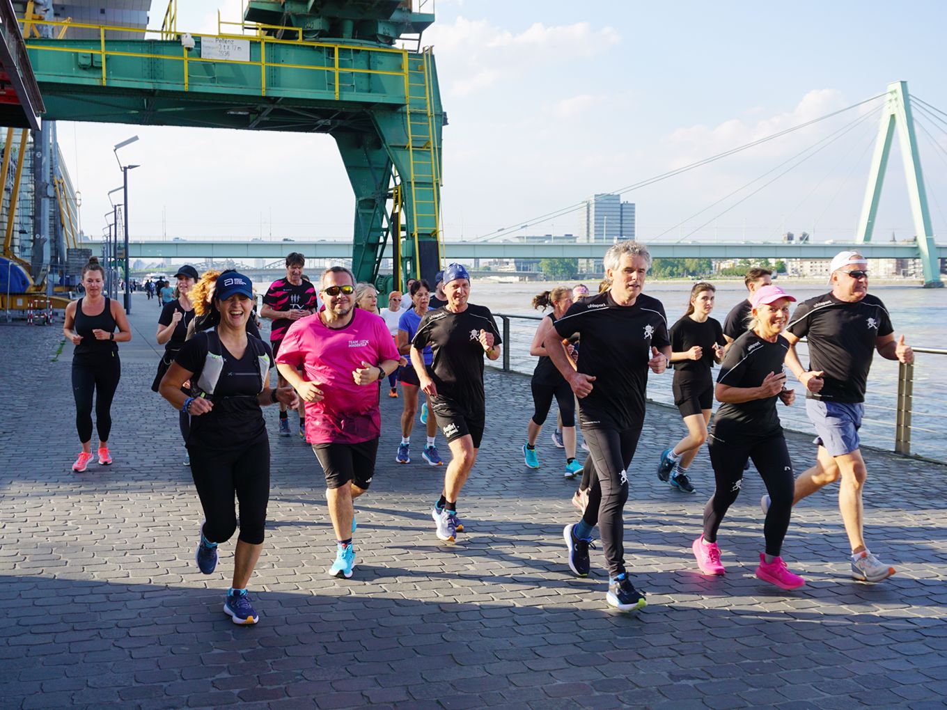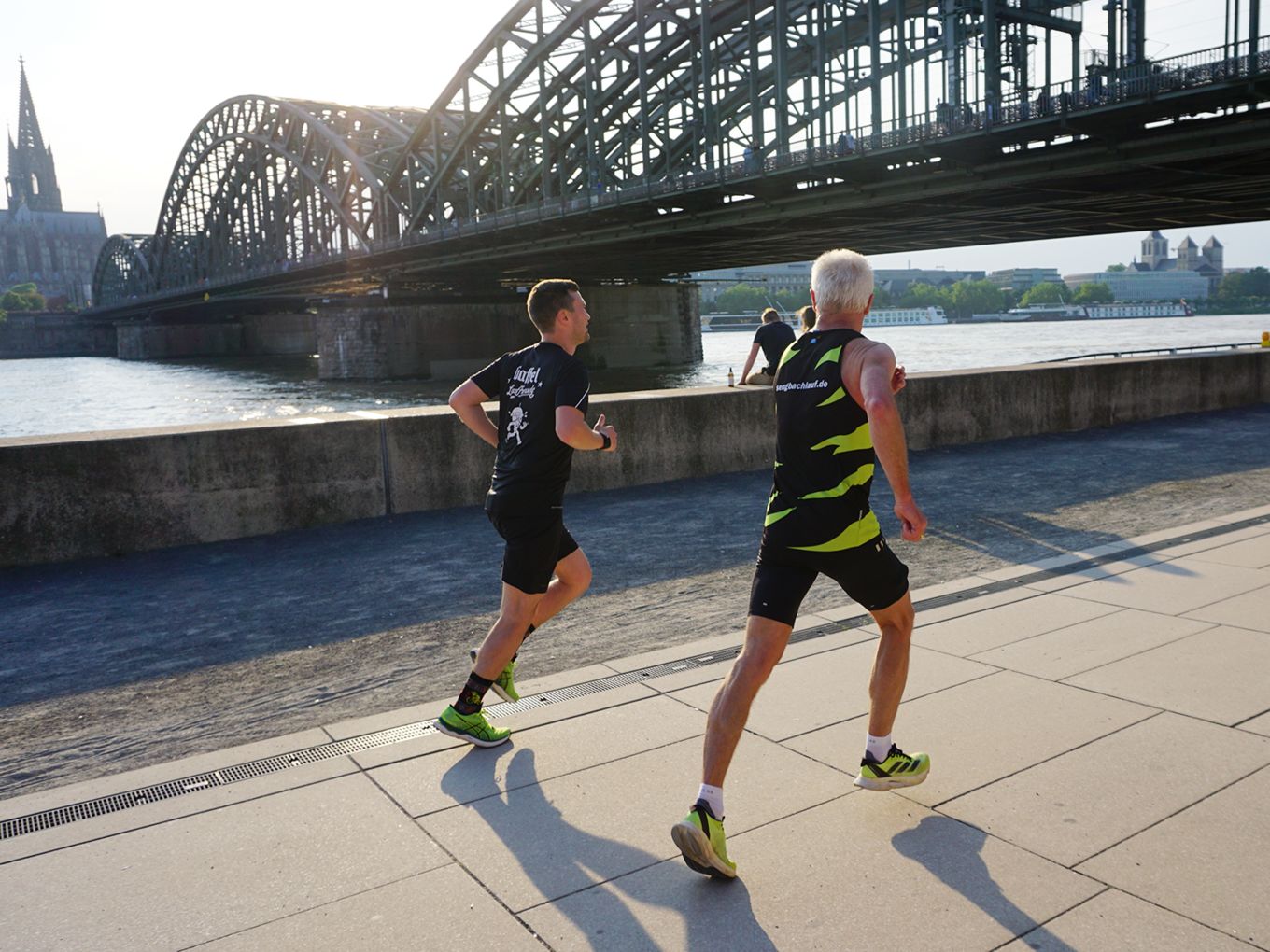 Mit den Gaffel Lauffreunden und True Motion am Rhein unterwegs. Rund 140 Läuferinnen und Läufer kamen zum Testrun mit Kölsch und Pizza in den Rheinpark.