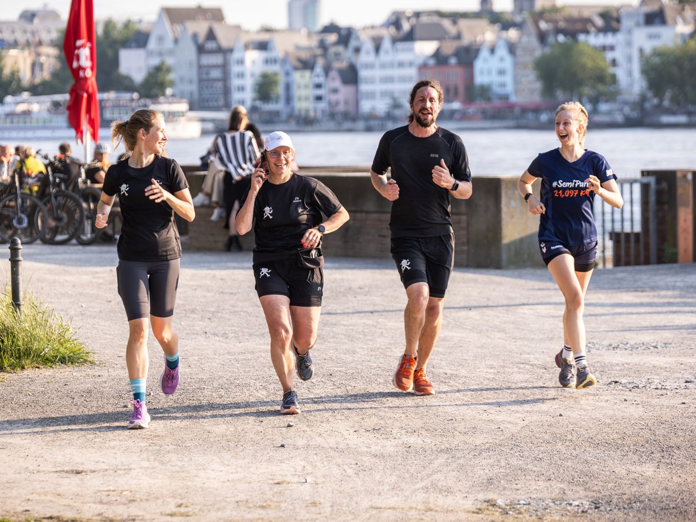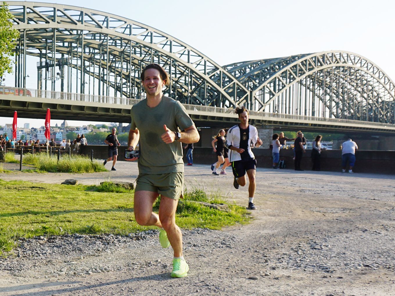 Für ihn ist der 14-tägige Donnerstag-Termin Pflichtsache. „Aber nicht, weil ich muss, sondern weil es riesigen Spaß macht, gemeinsam zu laufen, sich zu motivieren und Laufpläne zu schmieden.“ Und Events wie gestern, wenn fast 150 Menschen gut gelaunt nach der Arbeit auf die Kölner "Schäl Sick" pilgern, um einfach gemeinsam eine Stunde laufen zu gehen, begeistern "Basti" Lenninghausen jedes Mal aufs Neue. "Das ist einfach nur der Hammer. Ich selbst laufe eine Stunde lang mit einem Grinsen. Die Leute sind gut drauf, da kommen jung und alt, schnell und gemächlich zusammen - und es passt einfach."