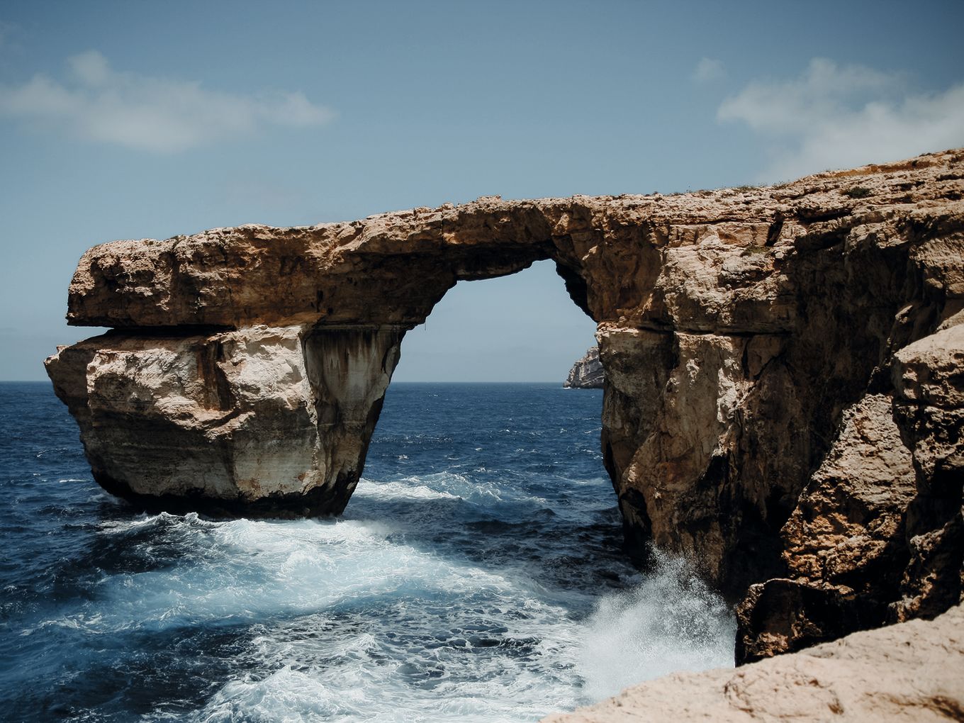 Die Insel Gozo gehört zum Staat Malta und ist von dort aus in etwa einer halben Stunde mit der Fähre zu erreichen. Gozo ist im Vergleich zu Malta grüner und weniger dicht besiedelt. Etwas über 30.000 Einwohner leben auf der Insel, in deren Inneren sich Täler und Hügelzüge abwechseln. An manchen Stellen fällt die Hochfläche als Klippen 100 Meter steil ins Meer ab. Berühmt ist Gozos „Azure Window“. Als blaues Fenster wurde ein 100 Meter langer und 20 Meter hoher natürlich geformter Torbogen bezeichnet, der von den Klippen ins Meer ragte.