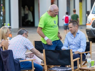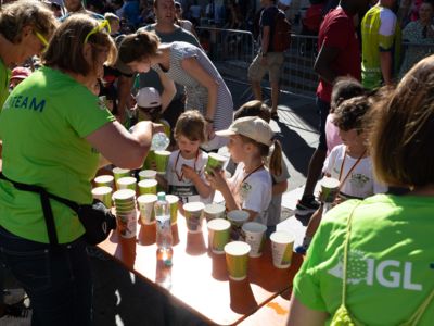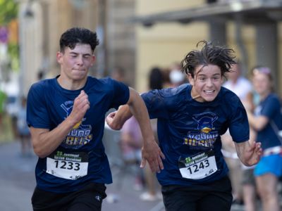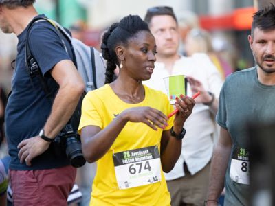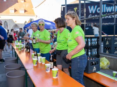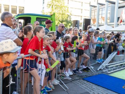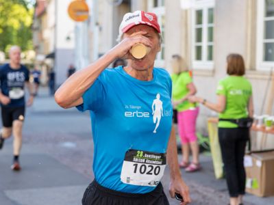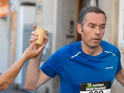 Bei sommerlichen Temperaturen verwandelte sich der Reutlinger Marktplatz am Samstagnachmittag zum Start- und Zielbereich des Solcom Altstadtlaufs. Hier tummelten sich Hunderte Menschen, um entweder selbst zu laufen oder die Teilnehmerinnen und Teilnehmer anzufeuern. Und wer gerade nicht lief oder anfeuerte, hatte die Möglichkeit, in der Lounge des Hauptsponsors Solcom zu verweilen, einen Fruchtcocktail zu trinken oder mit allerhand Leckereien auf dem Marktplatz versorgt zu werden. Auf einem zweieinhalb-Kilometer-langen Rundkurs wurden die Läuferinnen und Läufer unter den Jubelrufen der Zuschauerinnen und Zuschauer durch die Altstadt gepeitscht. Kurz bevor es in die nächste Runde über den Marktplatz ging, schaffte eine Getränkestelle der Hitze ein wenig Abhilfe und sorgte für Erfrischung.