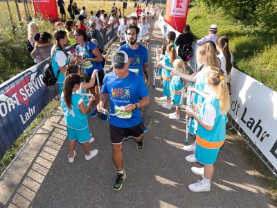 An diesem Abend waren persönliche Rekorde eher zweitrangig. Bei dieser spektakulären Betriebsversammlung der besonderen Art war das Gemeinschaftserlebnis mit den Kolleginnen und Kollegen das Highlight. Dennoch wurden Siegerinnen und Sieger in verschiedenen Kategorien gekürt. Die Stadtverwaltung Lahr schaffte es mit 109 Starterinnen und Startern auf den ersten Platz in der Wertungskategorie Größtes Team, gefolgt vom Hauptsponsor Zehnder mit 80 Teilnehmerinnen und Teilnehmern. Das Rennen um Platz drei der größten Teams wurde nochmals spannend, denn zu Beginn der Nachmeldephase trennten Schaffler Technologies und Zalando nur zwei Läuferinnen und Läufer. Letztendlich konnte sich Schaeffler Technologies durchsetzen und die 61 Teilnehmerinnen und Teilnehmer freuten sich über den Pokal des dritten Platzes.