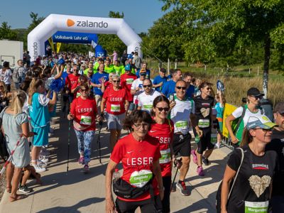 „Raus aus dem Büro, rein ins Vergnügen“, lautete das Motto des Zalando Firmenlaufs Lahr in der 45.000-Einwohnerstadt im Schwarzwald am vergangenen Freitagabend. So pilgerten zahlreiche Laufbegeisterte zum idyllischen Gelände des Seeparks. Bei sommerlichen Temperaturen schnürten etwa 1150 Teilnehmerinnen und Teilnehmer aus knapp 90 Unternehmen ihre Laufschuhe. Mit dem Startschuss pünktlich um 18 Uhr läutete Oberbürgermeister Markus Ibert die vierte Auflage des Firmenlaufs ein und schickte die Läuferinnen und Läufer auf die fünf Kilometer lange Strecke.