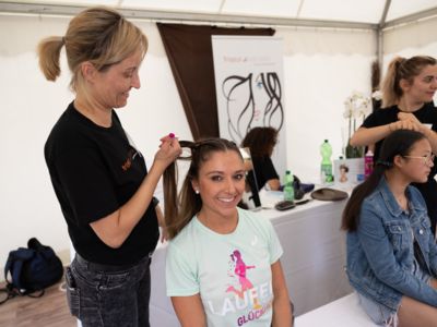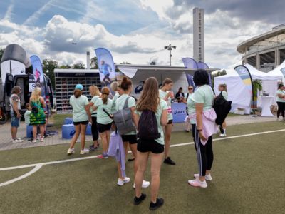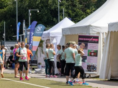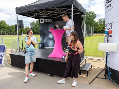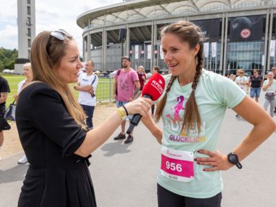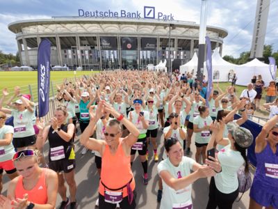 Bereits vor dem Startschuss eroberten die sportbegeisterten Frauen das Gelände des Deutsche Bank Parks in der Mainmetropole. Im Mittelpunkt des warmen Sommertages standen der Spaß und die gemeinschaftliche Freude an Bewegung, frei von Leistungsdruck und übertriebenem Ehrgeiz. Ein buntes Rahmenprogramm auf der Festwiese vor dem Stadion versüßte den Läuferinnen den Tag. Bereits ab 12 Uhr bot der Veranstalter Motion Events GmbH ein tolles Programm und machten den Lauf zu einem einzigartigen Ganztagsevent. Auf der Festwiese konnten die Läuferinnen entspannen, bummeln und die kulinarischen Angebote der Catering-Stände genießen. Besonders großen Anklang fand das Angebot der Friseur- und Kosmetikerinnung Frankfurt. Zahlreiche Läuferinnen ließen sich vor dem Event französische Zöpfe flechten.
