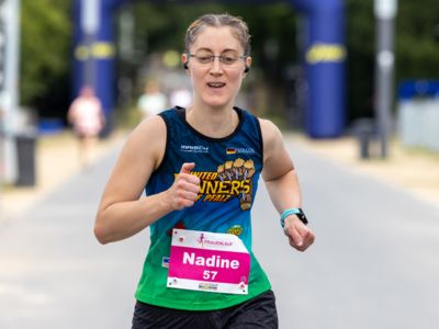 Beim Start des Zehn-Kilometer-Laufs herrschten ebenfalls warme Temperaturen. Nicht nur die schattige Strecke durch den Stadtwald, sondern auch die zwei Versorgungspunkte entlang der Strecke sorgten dafür, dass die Teilnehmerinnen bei den hohen Temperaturen einen kühlen Kopf behielten. Über die Zehn-Kilometer-Distanz holte sich Lena Becker (TGV Schotten/IQ Athletik Team) in 37:43 Minuten mit großen Abstand vor Malwina Lao (40:37 Stunden) und Nicole Brand (Eintracht Frankfurt Triathlon/42:14 Stunden) den Sieg.