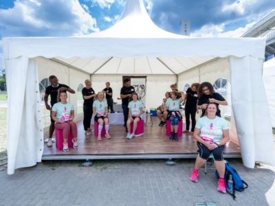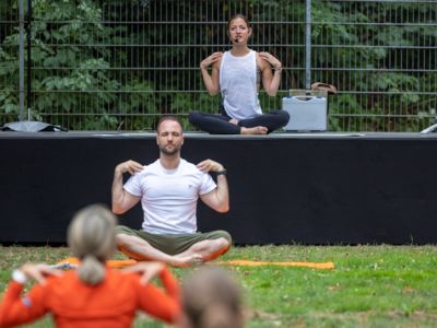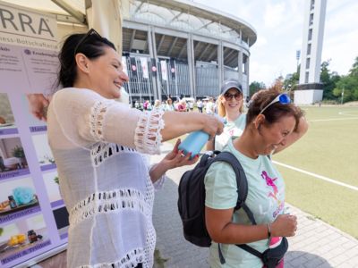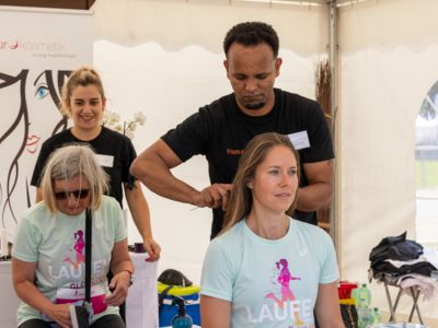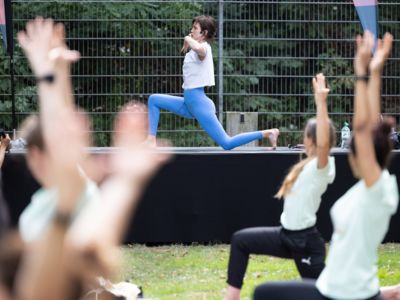 Im Ziel angekommen gab es für die Teilnehmerinnen erst einmal ein kühles Getränk und Obst sowie einen üppig gefüllten Finisher-Beutel. Alle, die nach dem Laufen noch genügend Energie für ein weiteres sportliches Highlight hatten, konnten an einem Yoga-Kurs powered bei Balance Yoga teilnehmen.
