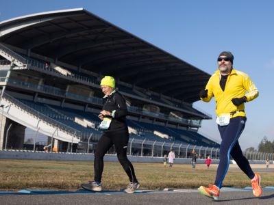 Über 2000 Teilnehmerinnen und Teilnehmer erlebten am heutigen Samstag bei Windstille, Sonnenschein und Temperaturen knapp über null Grad einen Traumtag auf dem Hockenheimring. Pünktlich um 10 Uhr fiel der Startschuss im Rolling Start-Verfahren für den Marathon. Hier begaben sich über 350 Marathonläuferinnen und -läufer auf die Strecke. Das größere Teilnehmerfeld mit über 1700 Teilnehmerinnen und Teilnehmern bildeten die Halbmarathonis, die eine Stunde nach den Marathonis ins Rennen starteten.