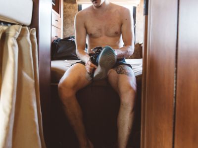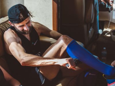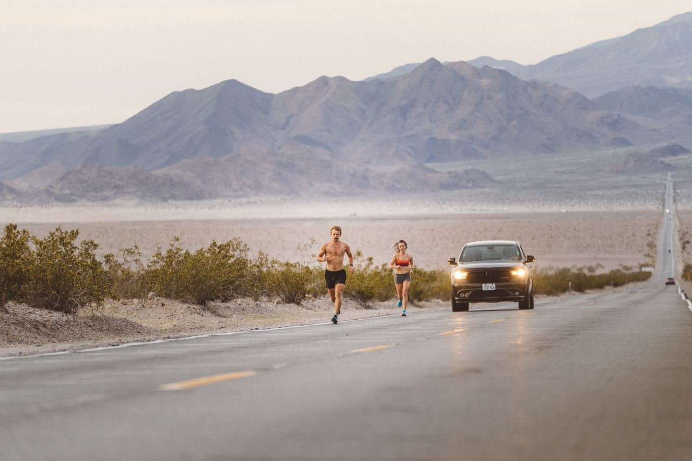Eine Woche vor dem Start reiste die Crew am 23. März nach Los Angeles: zehn Läufer, ein Foto- und ein Videograf und dazu noch sechs Freunde. Nachdem sie die ersten Tage relaxt hatten, fingen drei Tage vor dem Rennen die Vorbereitungen an. Und dabei profitierten sie von den Erfahrungen, die sie im vergangenen Jahr gemacht hatten. „Im letzten Jahr hatten wir unglaublich viel an Verpflegung für das Rennen, das wir dann gar nicht angerührt haben. Mehrere Liter Erdnussbutter, Melonen, Nudeln, Reis und noch viel mehr“, erzählt Eugen lachend. „Aber wenn man immer wieder läuft und dazwischen nur kurz schläft, schlagen solche Sachen einem auf den Magen.“ Deshalb gehörten in diesem Jahr vor allem Riegel und Bananenbrote zur Verpflegung. „Und Chips, die wir noch extra gesalzen haben. Wir haben im letzten Jahr gemerkt, wie wichtig die Salzzufuhr ist.“