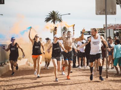 Davon erzählten sie dem Berliner Marco Prüfer, als der 2016 auf einer Hochzeit in Los Angeles und mehrmals mit dem dortigen Nike Running Club unterwegs war. „Das Ding fand ich so geil und inspirierend“, erzählt er. Und rief gleich Eugen Fink an. Die beiden sind die Gründer der Berliner Laufcrew „Kraft Runners“, die sich jeden Dienstag in Berlin am Cafe Kraft treffen, um gemeinsam mit vielen anderen beim Laufen richtig Gas zu geben – „geil ballern“, wie sie es nennen.