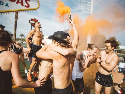 Doch schnell war ihnen klar: Die Einladung ist echt – und fingen an zu checken: Wollen wir das machen? Können wir das finanziell stemmen? Haben wir noch genug Urlaubstage? Kurz darauf stand fest: Im Frühjahr sind die Berliner mit acht Mann und Frau dabei. Nach 39:29:01 Stunden erreichten sie als zweites Team von rund 20 Las Vegas. „Danach waren einige von uns echt k.o. und krank, und wir haben uns gesagt, so einen Scheiß machen wir nie wieder“, erzählt Marco. „Aber letztendlich hatten alle von uns wahnsinnige Bilder von dem Lauf im Kopf, die viel stärker waren als die Erschöpfung. Und so waren wir dieses Jahr wieder dabei.“
