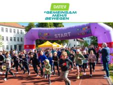 Freizeitläuferinnen und -läufer laufen gegen Profis