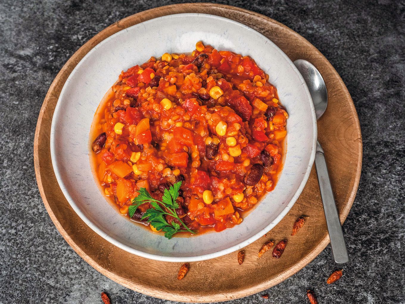 Es muss nicht immer Fleisch sein. Dieses Linsenchili ist ein super Eiweiß- und Eisenlieferant und zusätzlich eine günstige Alternative für den Geldbeutel.