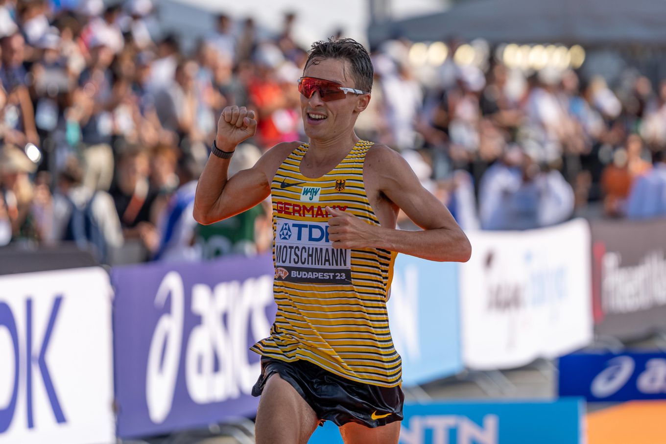 Auch Johannes Motschmann peilt einen Start bei den Olympischen Spielen 2024 in Paris an. In Budapest hielt sich der Berliner in der Hitze und bei hoher Luftfeuchtigkeit ebenfalls gut. Er hatte sich frühzeitig etwas weiter hinten im Feld einsortiert und erreichte die Halbmarathon-Marke nach 66:37 Minuten auf Rang 57. Johannes Motschmann konnte sein Tempo in der zweiten Hälfte fast halten, lief noch bis auf Platz 26 nach vorne und war nach 2:14:19 im Ziel am Heldenplatz.