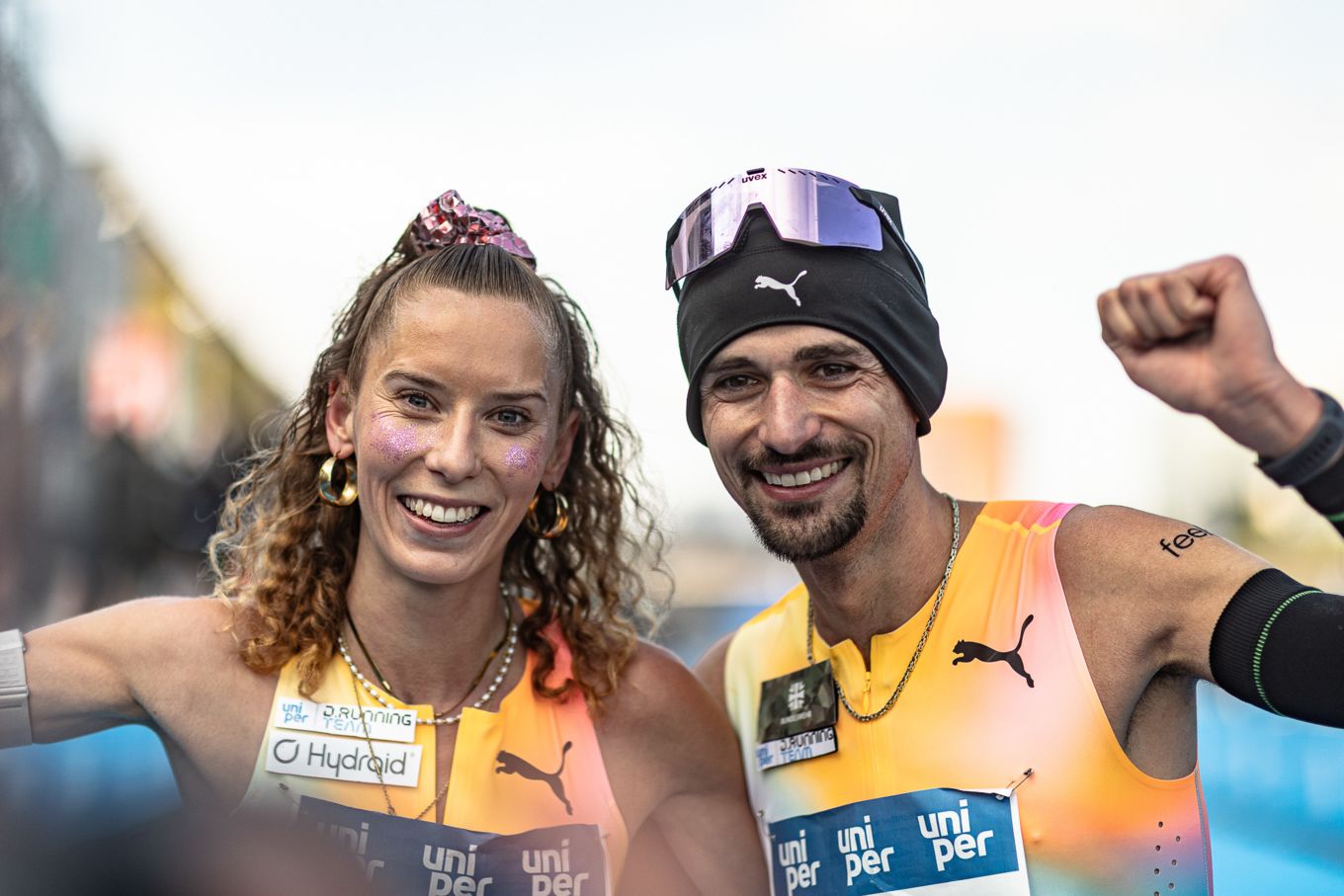 Für Top-Leistungen sorgten an diesem Wochenende aber auch wieder mal das Ehepaar Pfeiffer – wenn man in die Bewertung mit einfließen lässt, dass Hendrik und Esther eine Woche vor dem von ihrem Partner Uniper unterstützten Düsseldorf-Marathon in Boston und Laredo in extrem harten Rennen jeweils eine Bestleistung abgeliefert hatten. Esther hatte ihre Zehn-Kilometer-Bestleistung auf 30:45 Minuten gesteigert und Hendrik war in Boston mit 2:06:34 so schnell wie nie zuvor über 42,195 Kilometer. Das zählt zwar wegen der insgesamt abschüssigen Strecke in Boston nicht für die offiziellen Bestenlisten, aber wer die hügelige Strecke von Boston kennt, weiß, wie hoch das einzuschätzen ist. In Düsseldorf gewannen beide Athleten aus dem aus dem Uniper D.RUNNING Team den Halbmarathon. Esther in 68:38 Minuten und Hendrik in 64:04.
