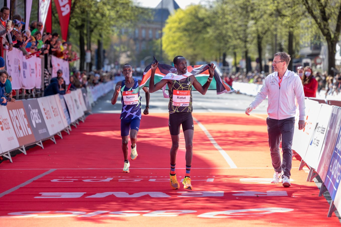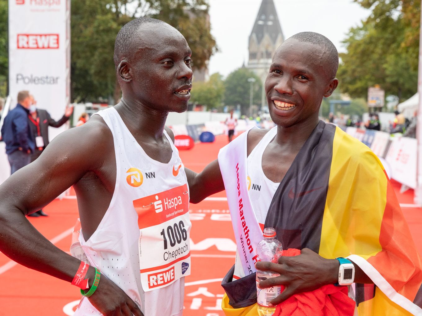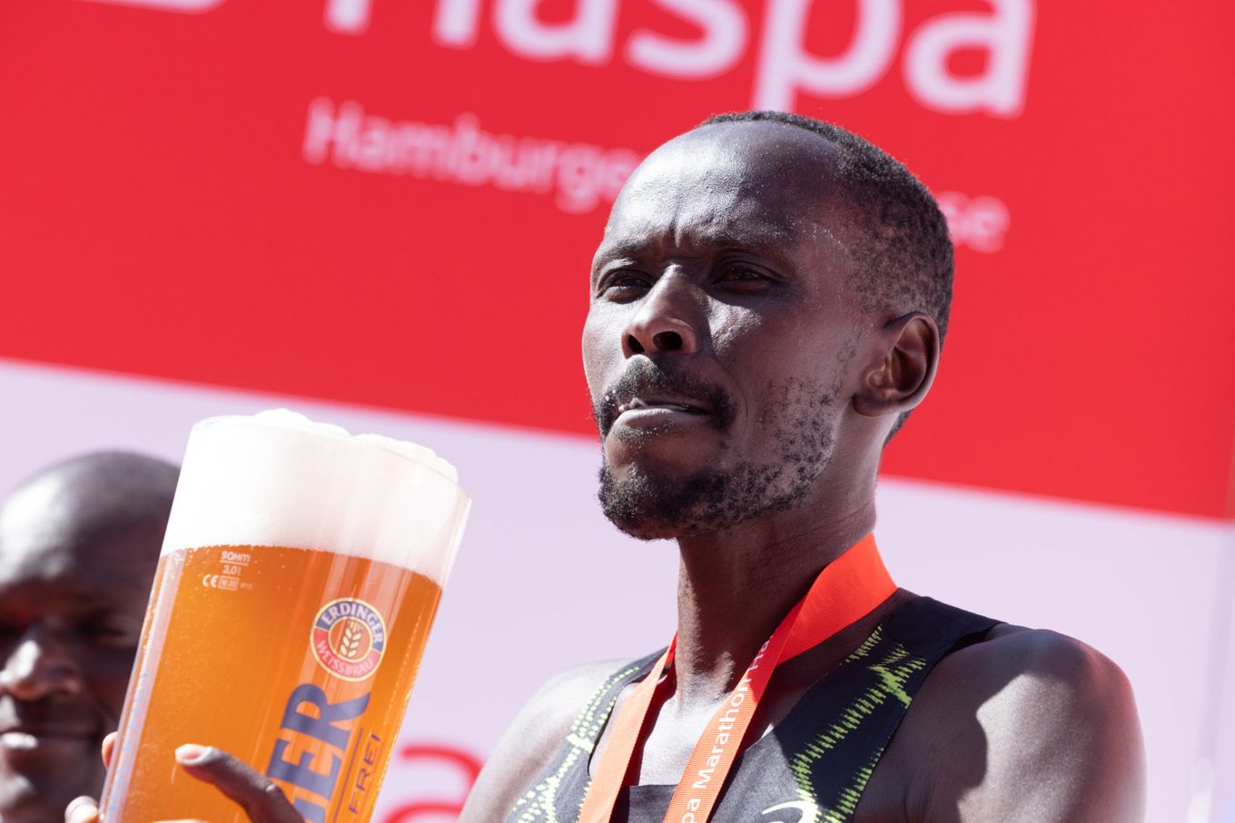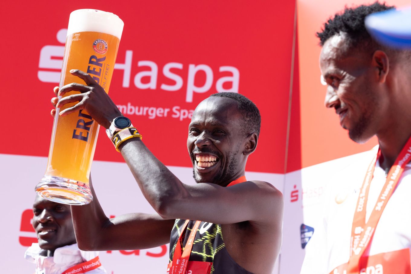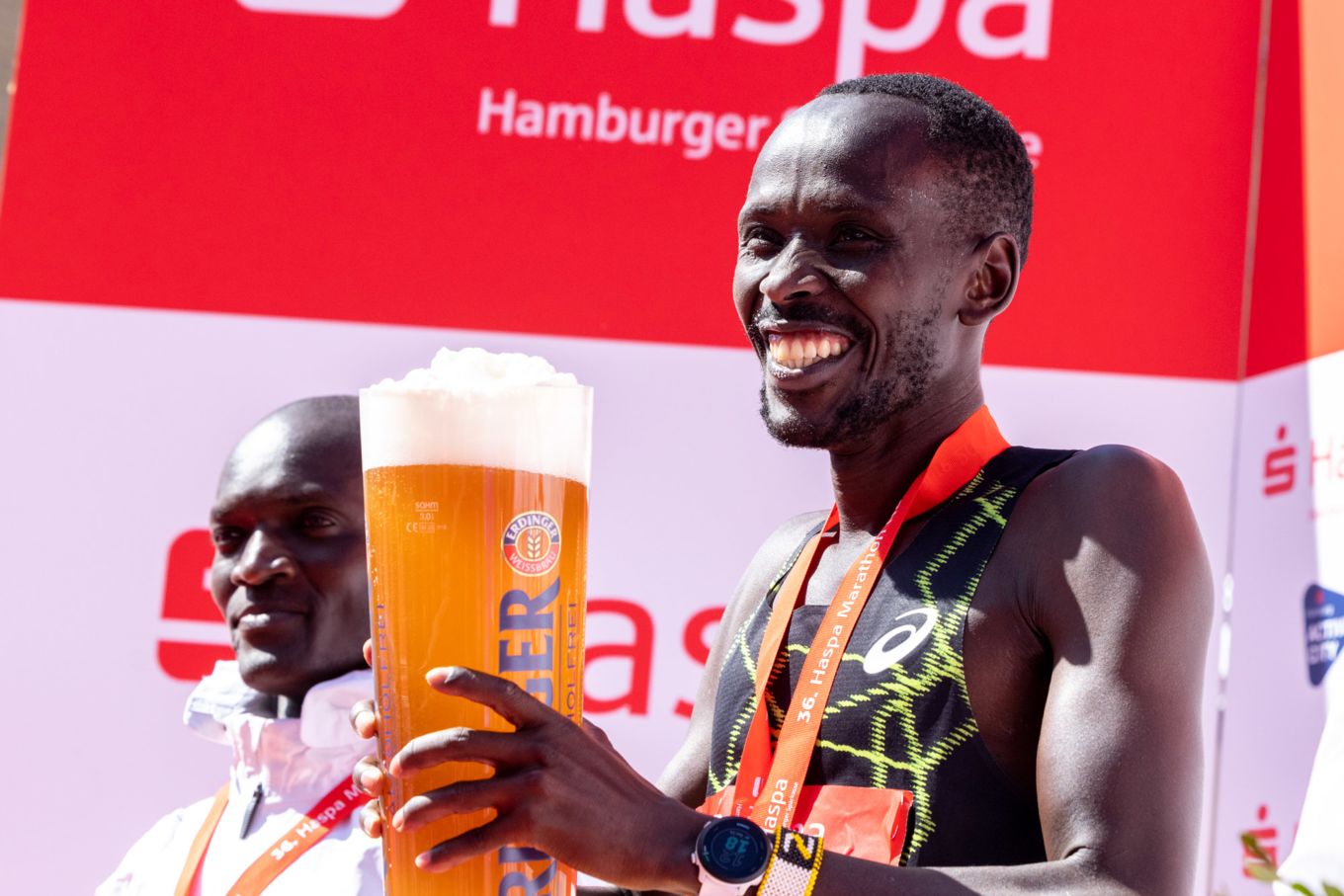 „Das waren sehr gute Bedingungen heute, die Pacemaker haben auf den ersten 30 Kilometern gegen den Wind geholfen. Und hinten raus hat er mir etwas geholfen“, sagte der glückliche Sieger aus Kenia im Ziel.