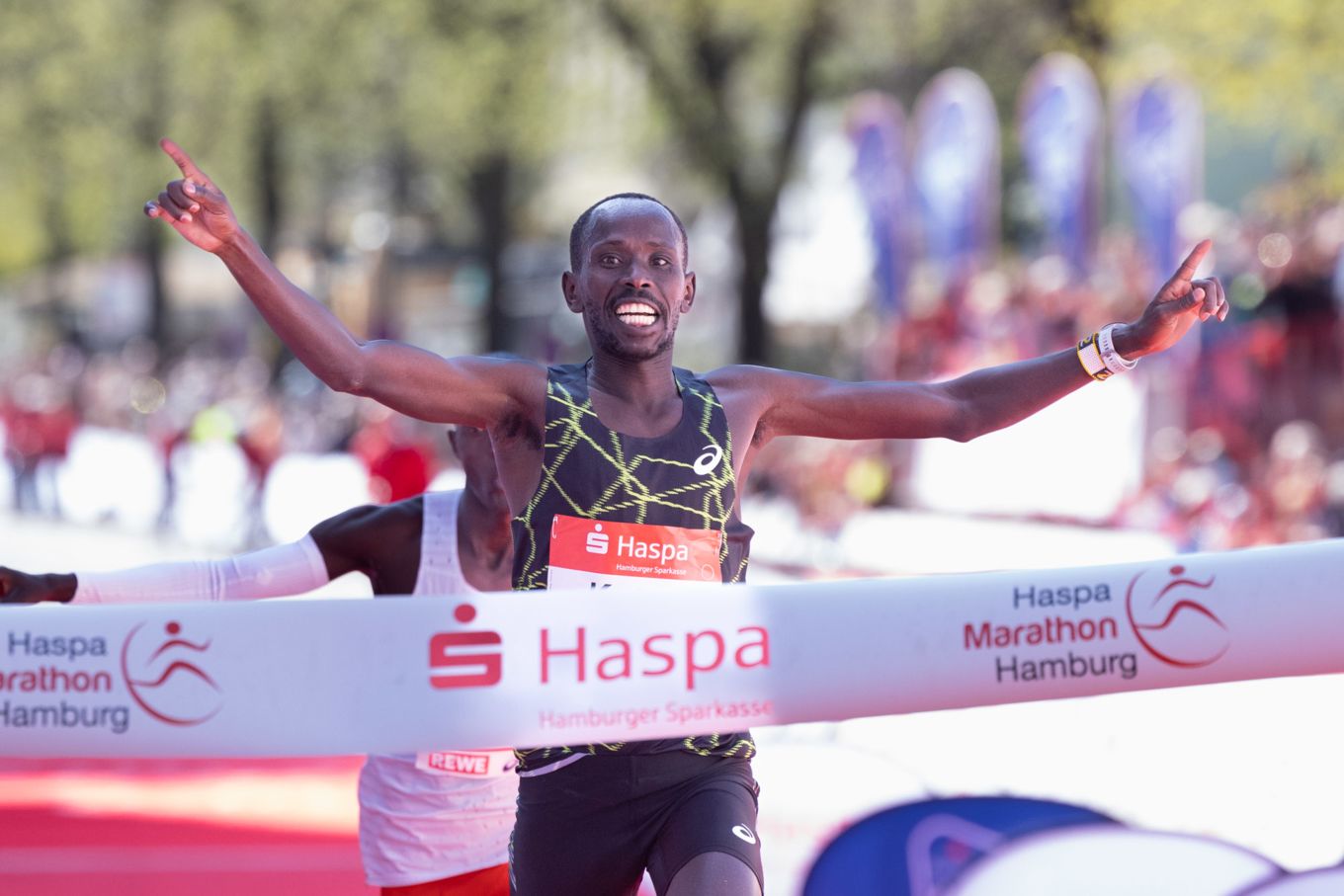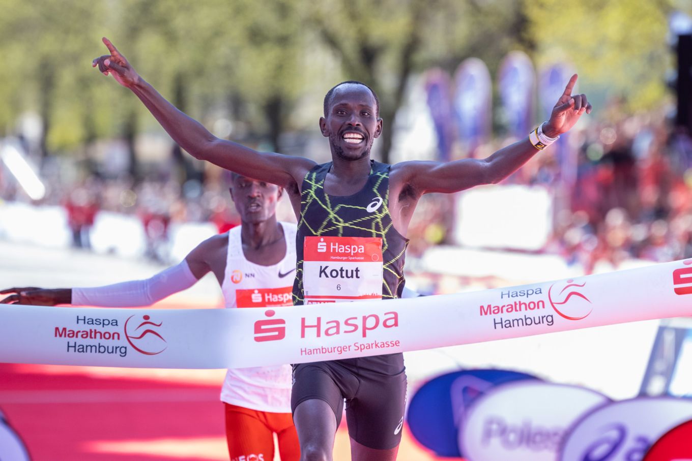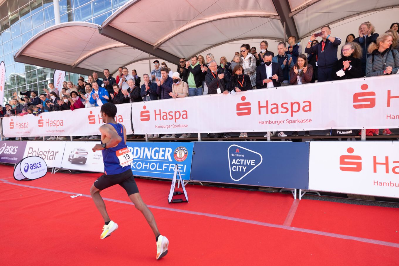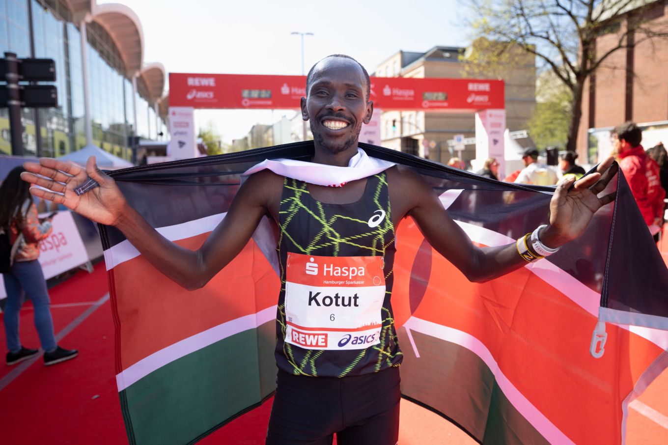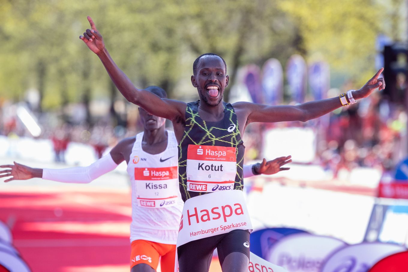 Seinen Streckenrekord ist Eliud Kipchoge seit dem 24. April 2022 aber los. Gleich vier Athleten unterboten Kipchoges 2:05:30 Stunden. Cybrian Kotut (Kenia) und Stephen Kissa (Uganda) waren die beiden Läufer, die aus der großen Gruppe der Eliteläufer übrig blieben. Erst auf dem roten Teppich vor dem Ziel an der Messe Hamburg fiel die Entscheidung. Kotut behielt mit 2:04:47 zu 2:04:48 Stunden knapp die Oberhand. Dahinter folgten Workineh Tadesse (Äthiopien/2:05:07 h) und Victor Kiplangat (Uganda/2:05:09 h).