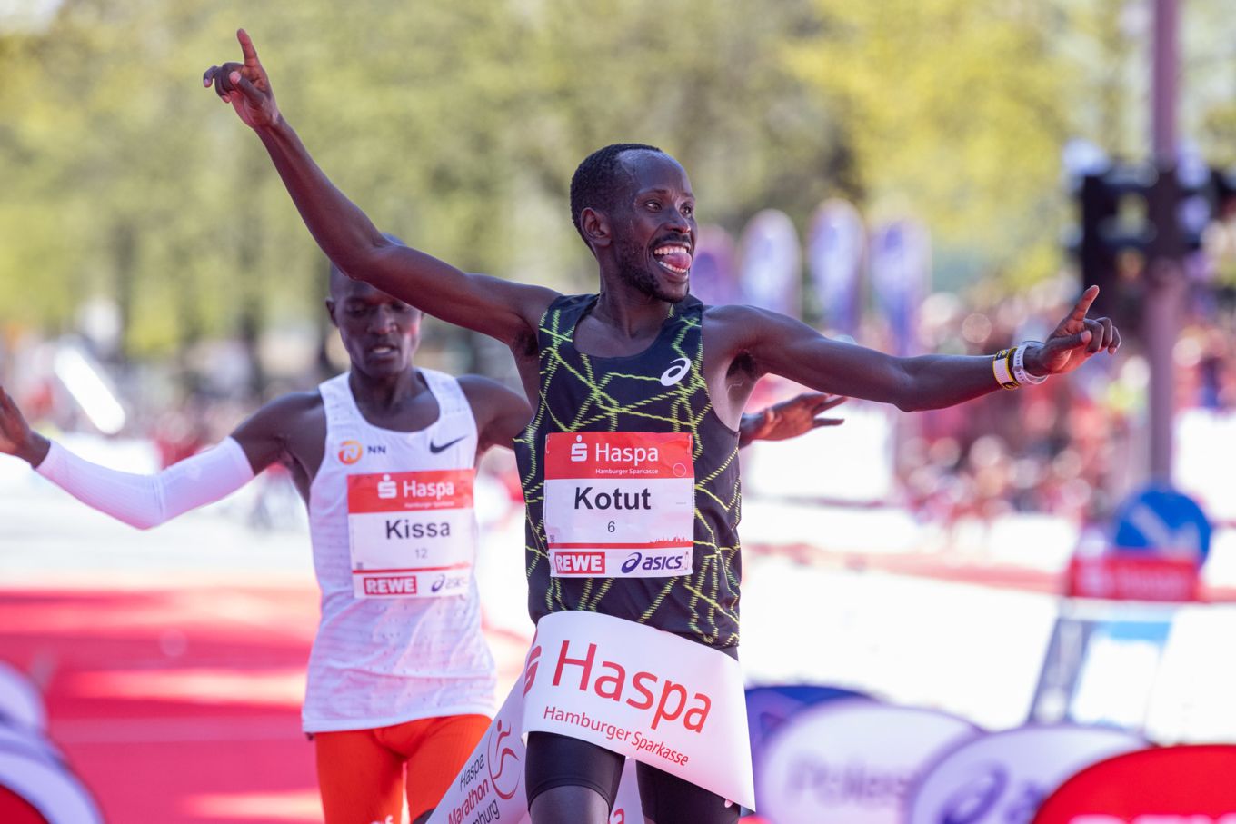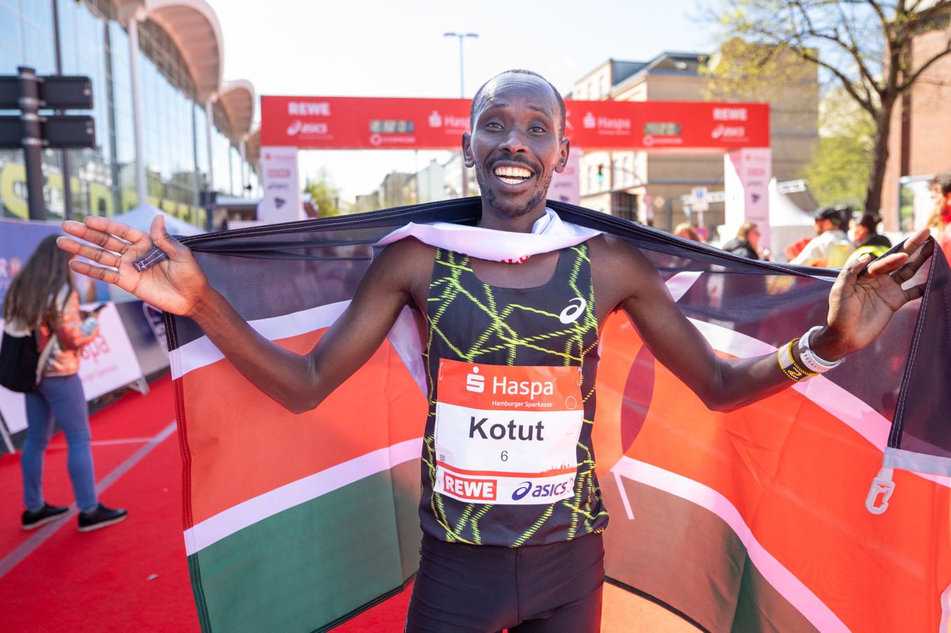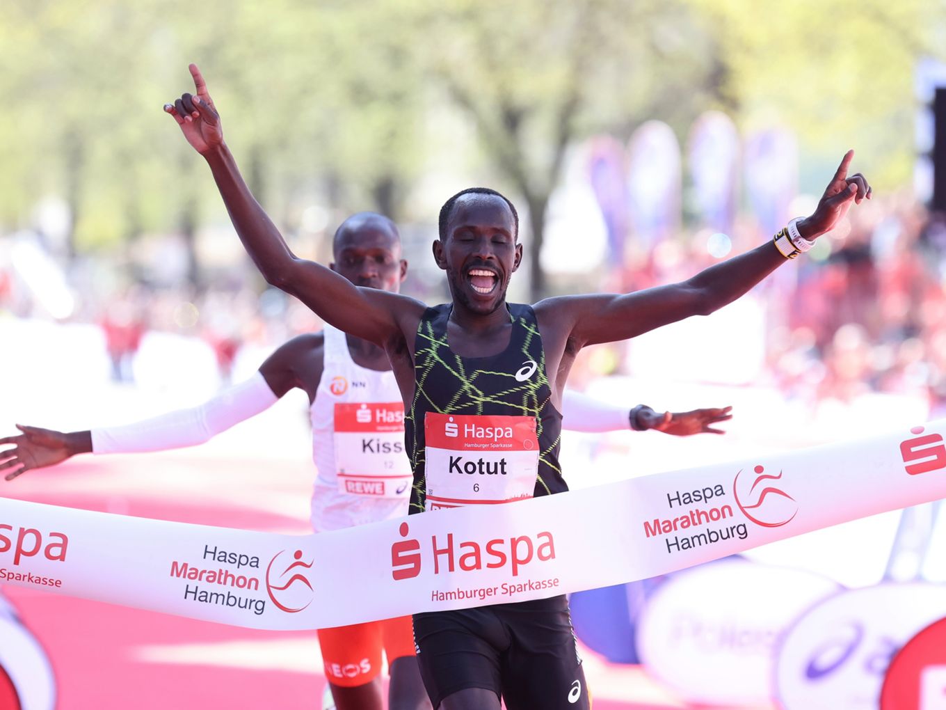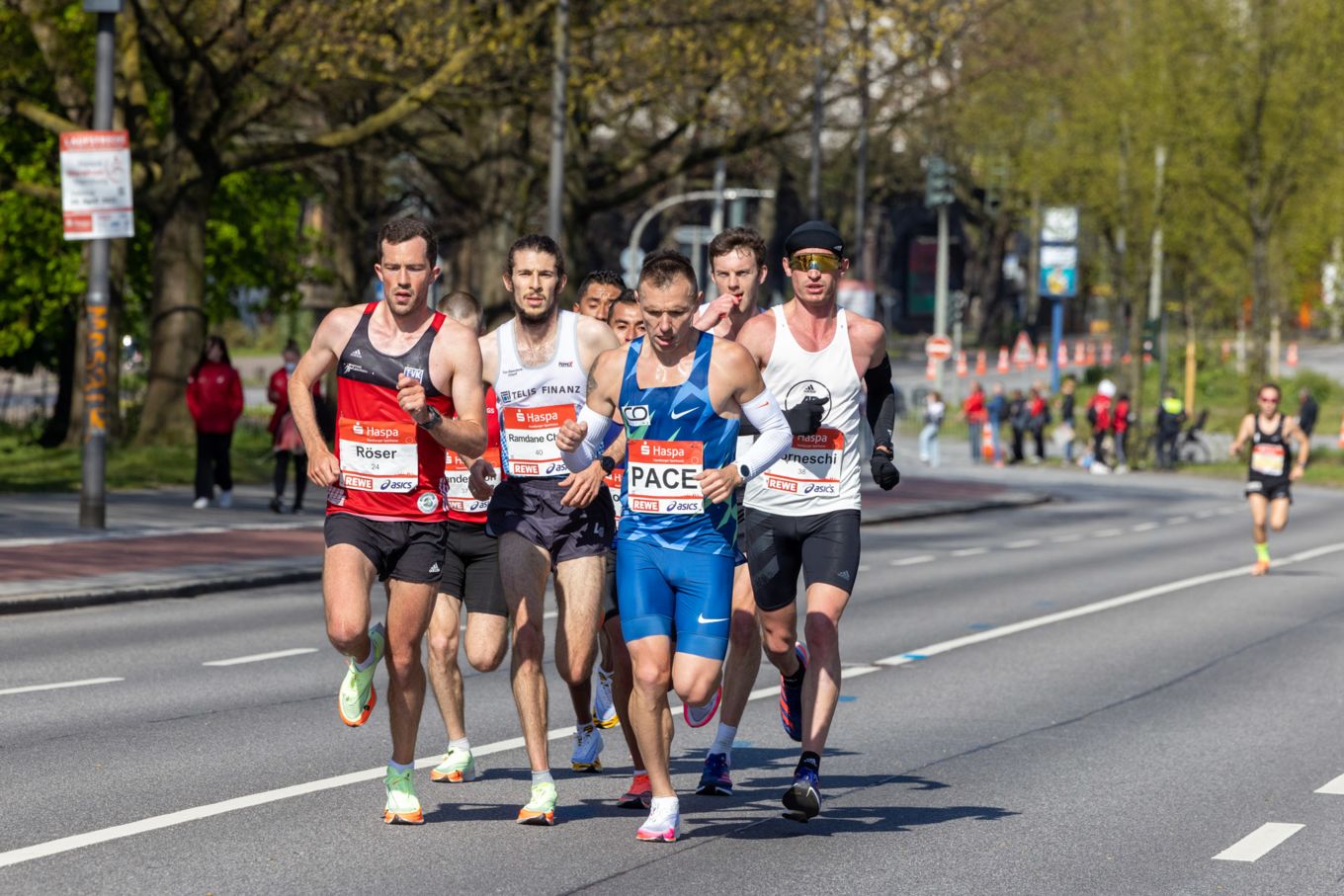 Seinen Streckenrekord ist Eliud Kipchoge seit dem 24. April 2022 aber los. Gleich vier Athleten unterboten Kipchoges 2:05:30 Stunden. Cybrian Kotut (Kenia) und Stephen Kissa (Uganda) waren die beiden Läufer, die aus der großen Gruppe der Eliteläufer übrig blieben. Erst auf dem roten Teppich vor dem Ziel an der Messe Hamburg fiel die Entscheidung. Kotut behielt mit 2:04:47 zu 2:04:48 Stunden knapp die Oberhand. Dahinter folgten Workineh Tadesse (Äthiopien/2:05:07 h) und Victor Kiplangat (Uganda/2:05:09 h).