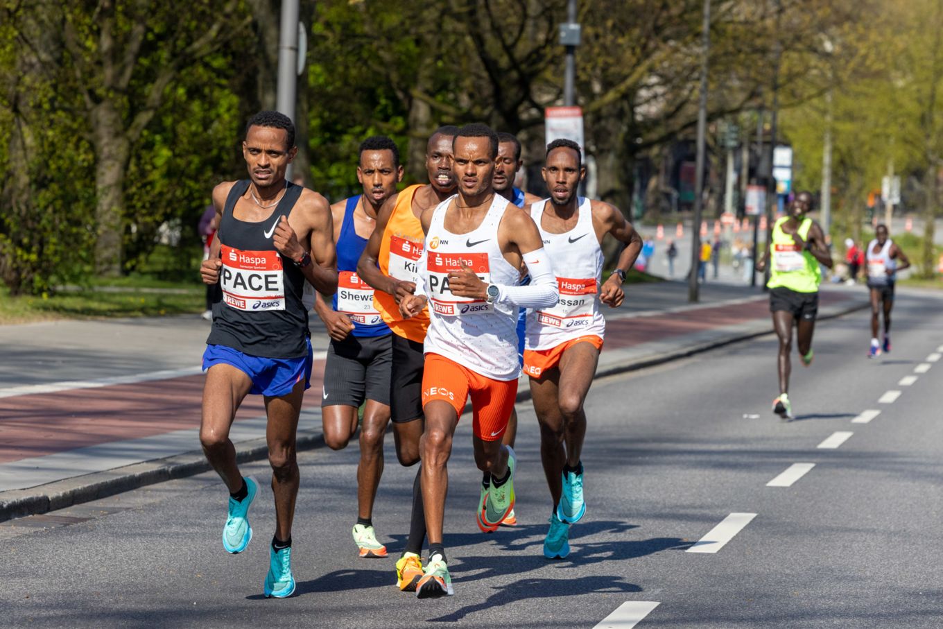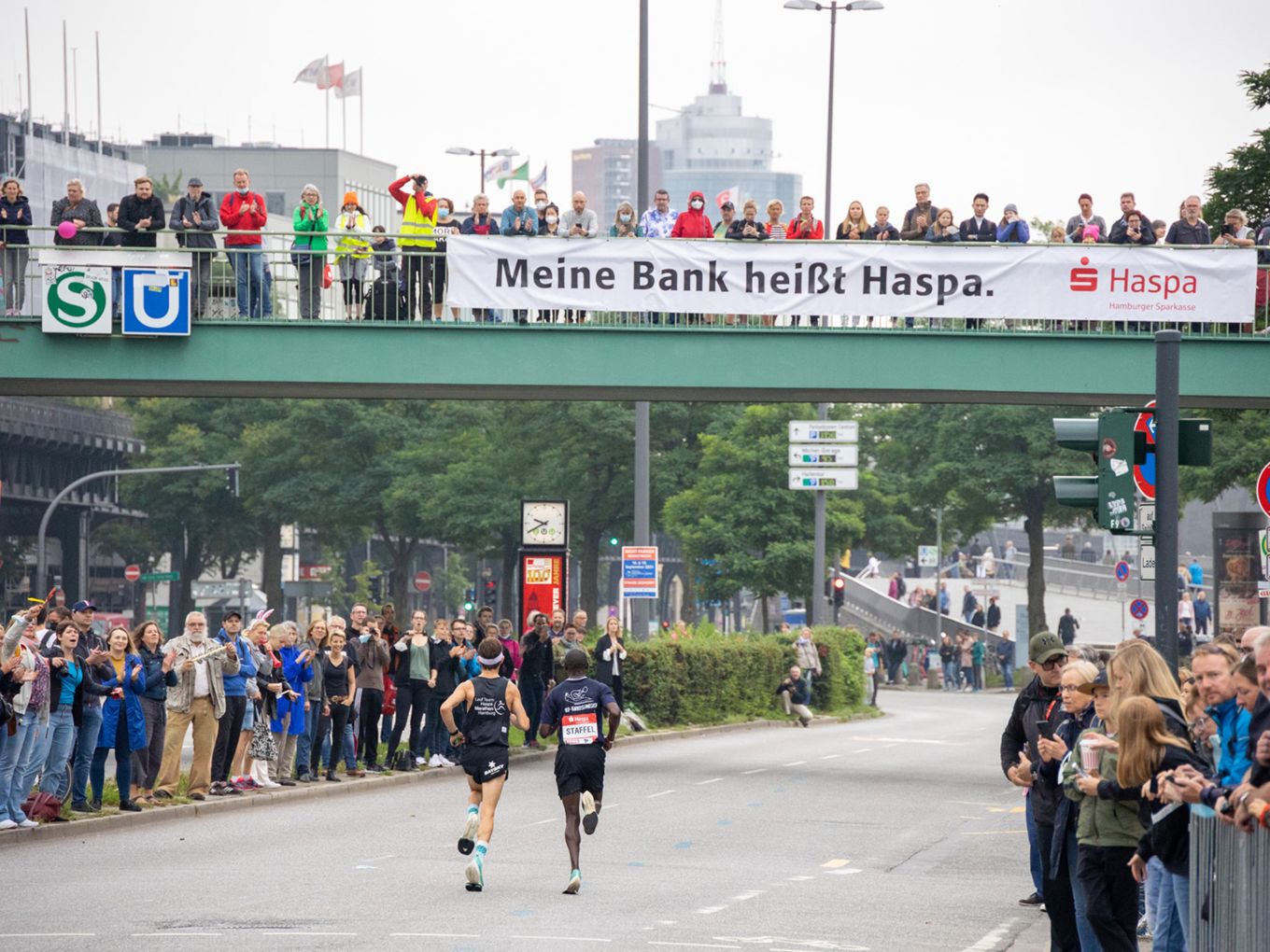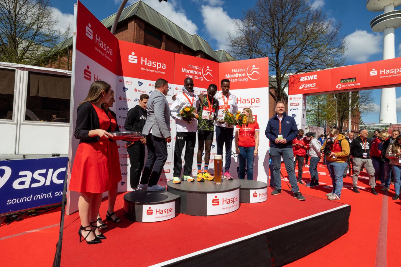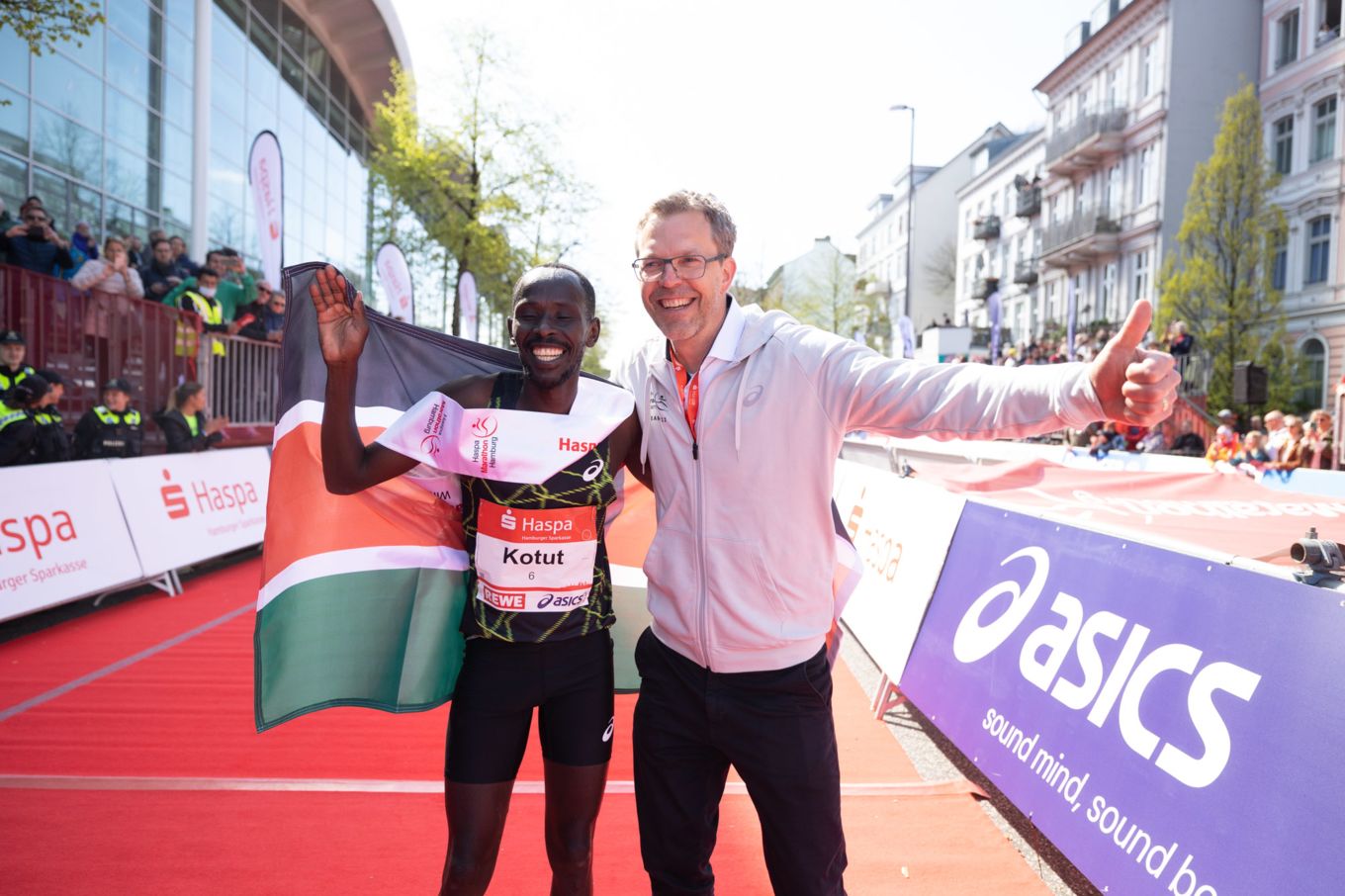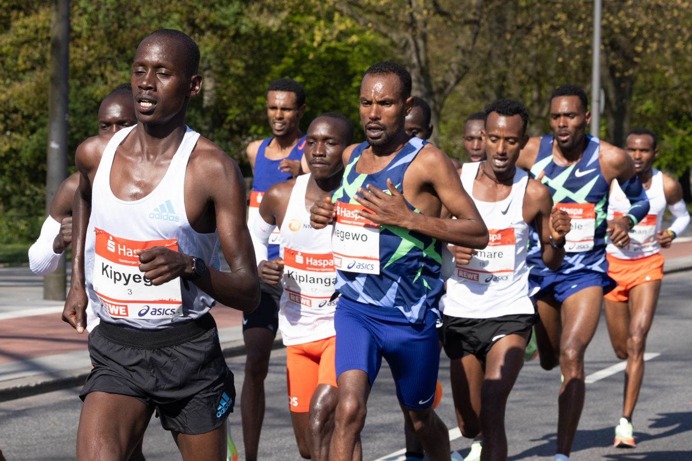 Seinen Streckenrekord ist Eliud Kipchoge seit dem 24. April 2022 aber los. Gleich vier Athleten unterboten Kipchoges 2:05:30 Stunden. Cybrian Kotut (Kenia) und Stephen Kissa (Uganda) waren die beiden Läufer, die aus der großen Gruppe der Eliteläufer übrig blieben. Erst auf dem roten Teppich vor dem Ziel an der Messe Hamburg fiel die Entscheidung. Kotut behielt mit 2:04:47 zu 2:04:48 Stunden knapp die Oberhand. Dahinter folgten Workineh Tadesse (Äthiopien/2:05:07 h) und Victor Kiplangat (Uganda/2:05:09 h).