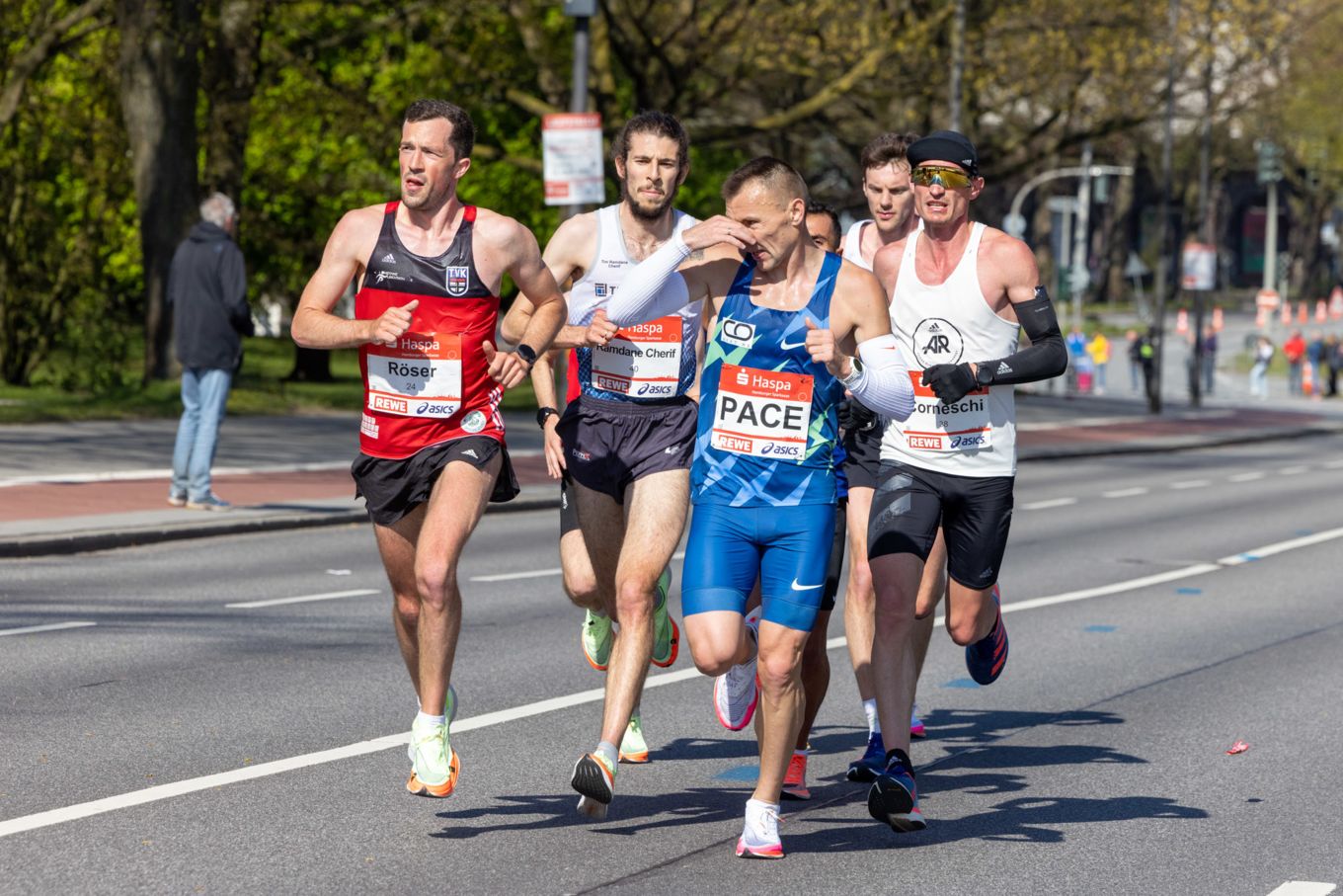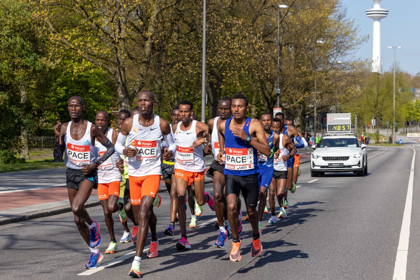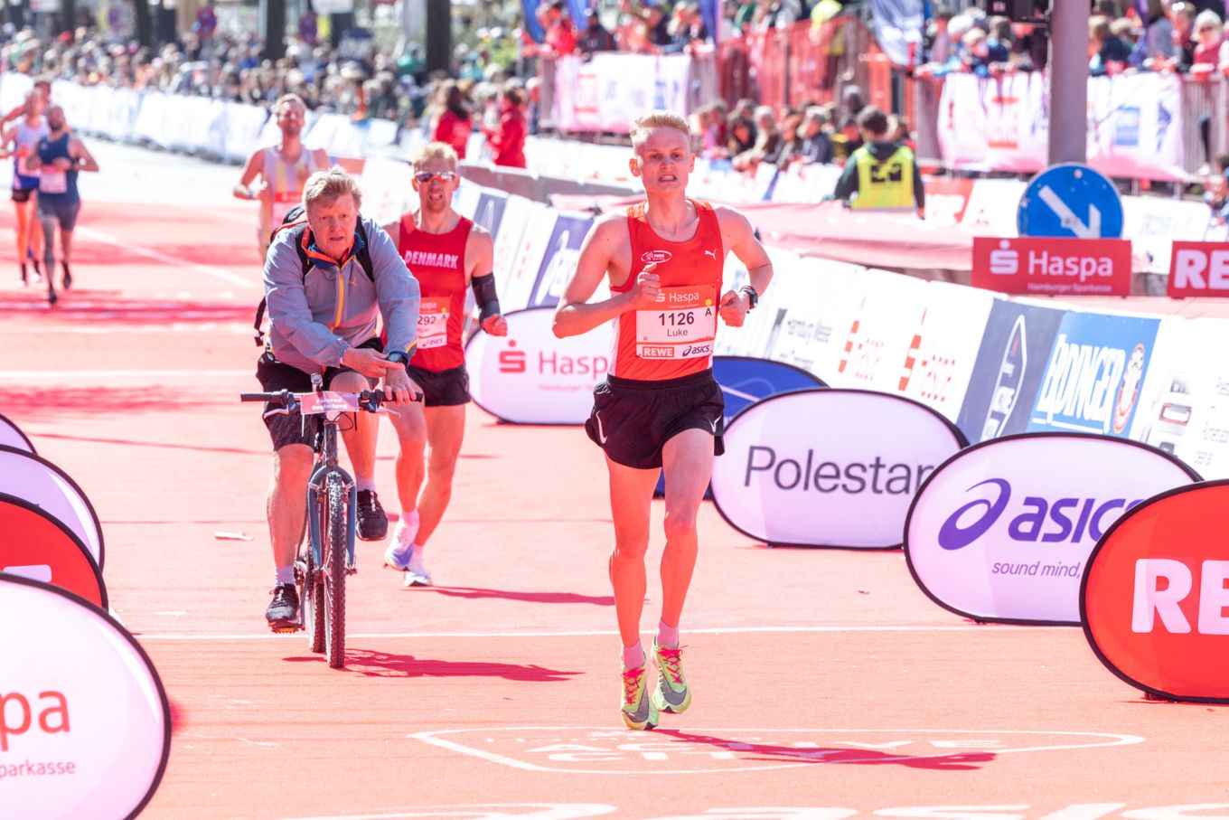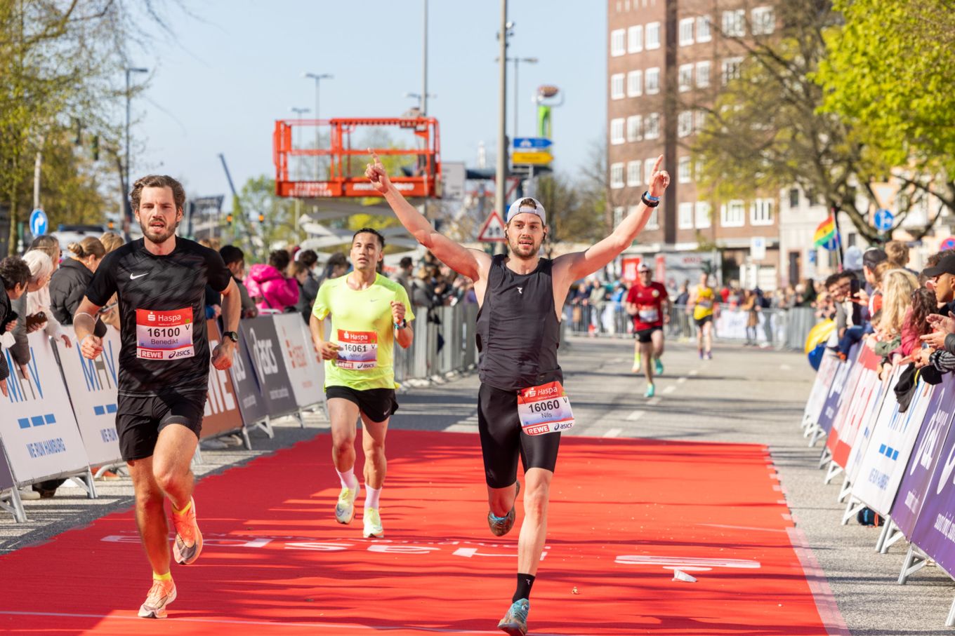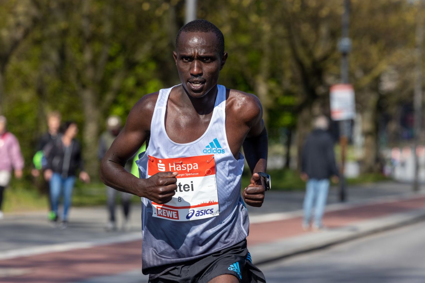 Seinen Streckenrekord ist Eliud Kipchoge seit dem 24. April 2022 aber los. Gleich vier Athleten unterboten Kipchoges 2:05:30 Stunden. Cybrian Kotut (Kenia) und Stephen Kissa (Uganda) waren die beiden Läufer, die aus der großen Gruppe der Eliteläufer übrig blieben. Erst auf dem roten Teppich vor dem Ziel an der Messe Hamburg fiel die Entscheidung. Kotut behielt mit 2:04:47 zu 2:04:48 Stunden knapp die Oberhand. Dahinter folgten Workineh Tadesse (Äthiopien/2:05:07 h) und Victor Kiplangat (Uganda/2:05:09 h).