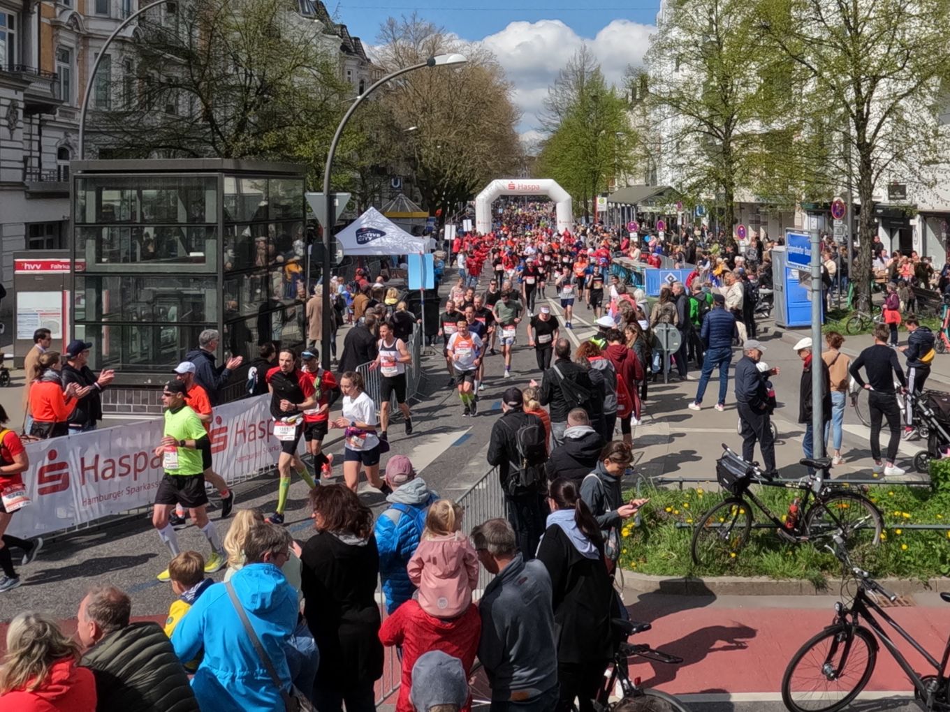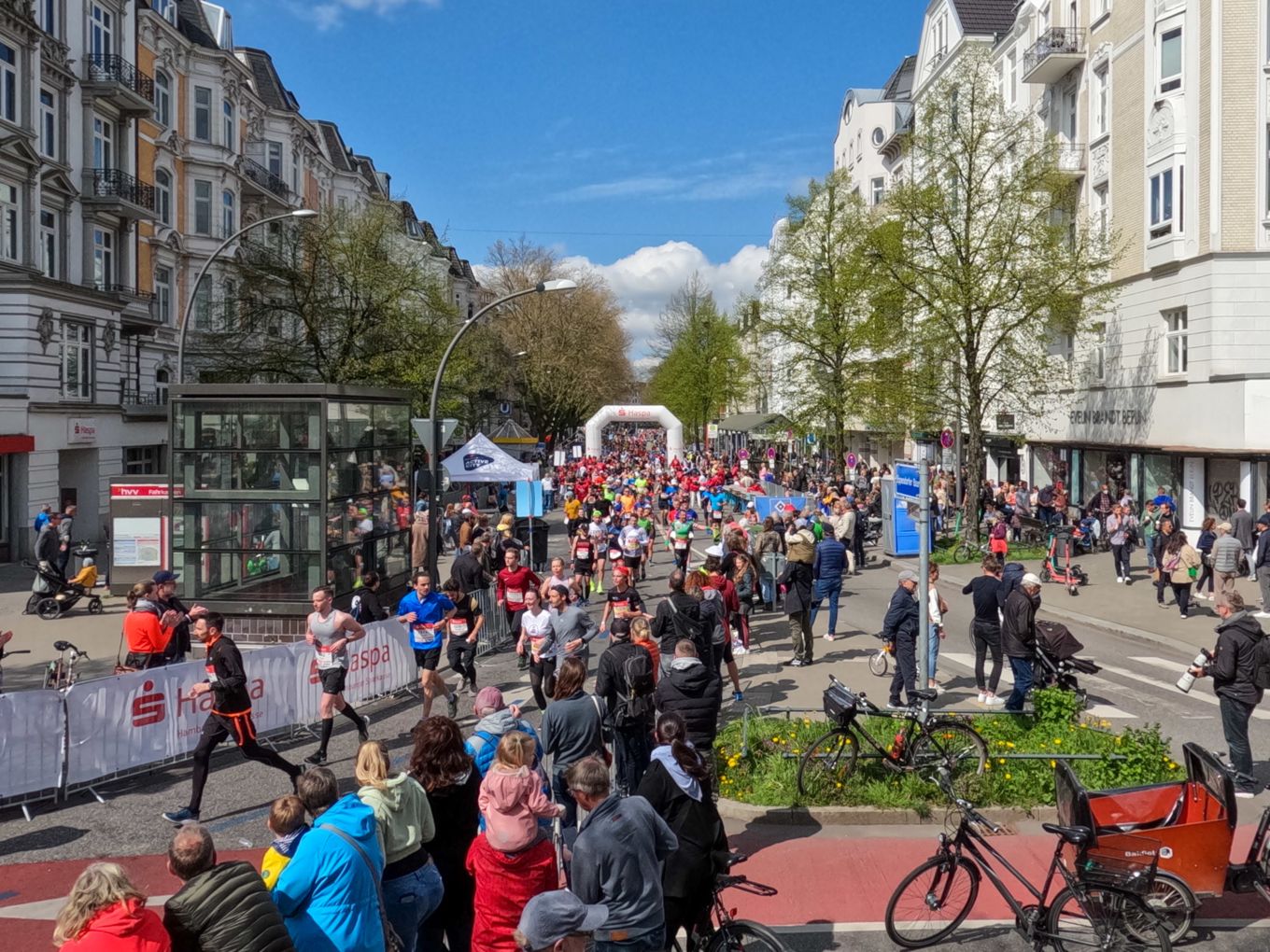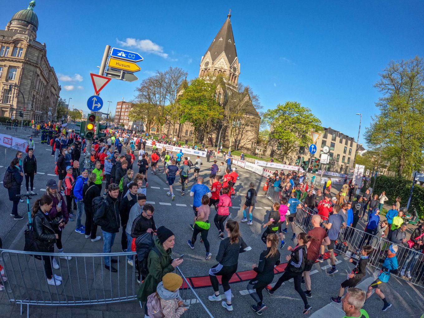 Bei 9 Grad Celsius, 75 Prozent Luftfeuchtigkeit und teilweise böigen Winden (bis 50 km/h) wurden die Top-Läuferinnen und Läufer sowie über 15.000 weitere Marathon-, Halbmarathon- und Staffel-Teilnehmer*innen (von ca. 20.000 gemeldeten Startern) bei strahlendem Sonnenschein auf die wunderschöne Strecke durch Hamburg geschickt.
