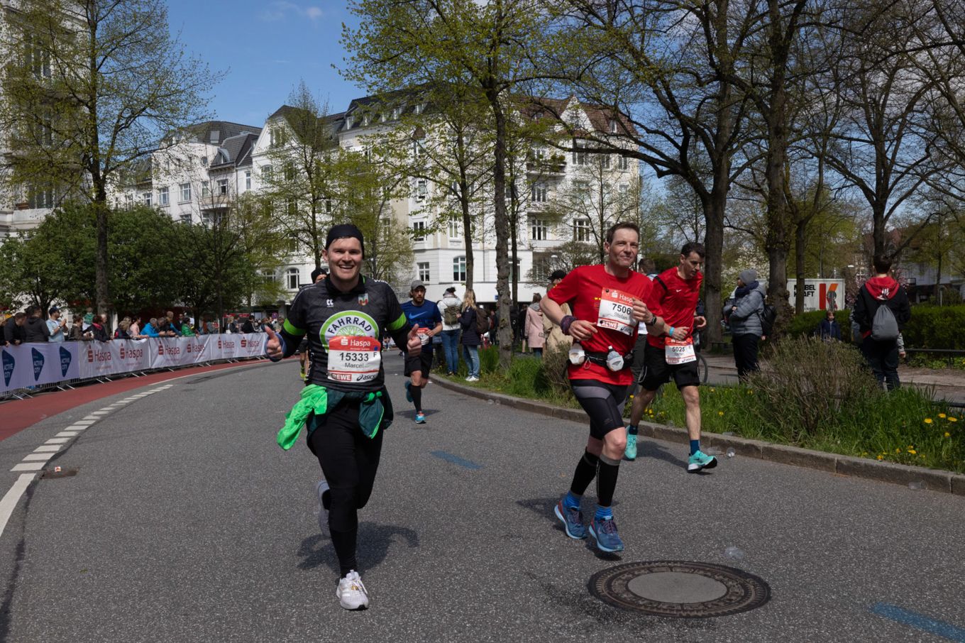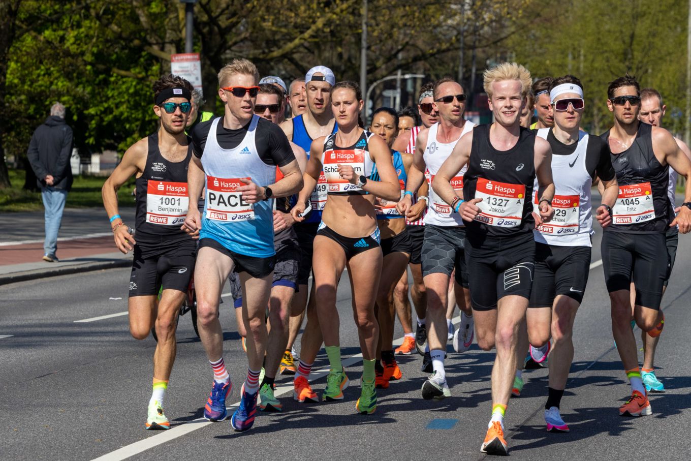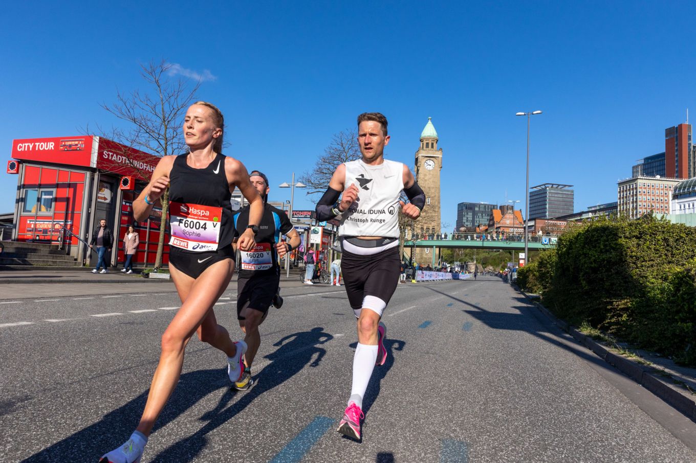 Bei 9 Grad Celsius, 75 Prozent Luftfeuchtigkeit und teilweise böigen Winden (bis 50 km/h) wurden die Top-Läuferinnen und Läufer sowie über 15.000 weitere Marathon-, Halbmarathon- und Staffel-Teilnehmer*innen (von ca. 20.000 gemeldeten Startern) bei strahlendem Sonnenschein auf die wunderschöne Strecke durch Hamburg geschickt.