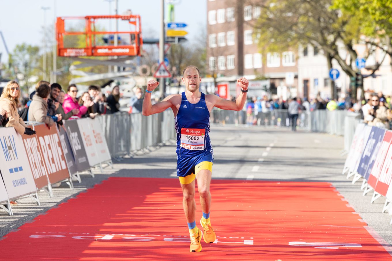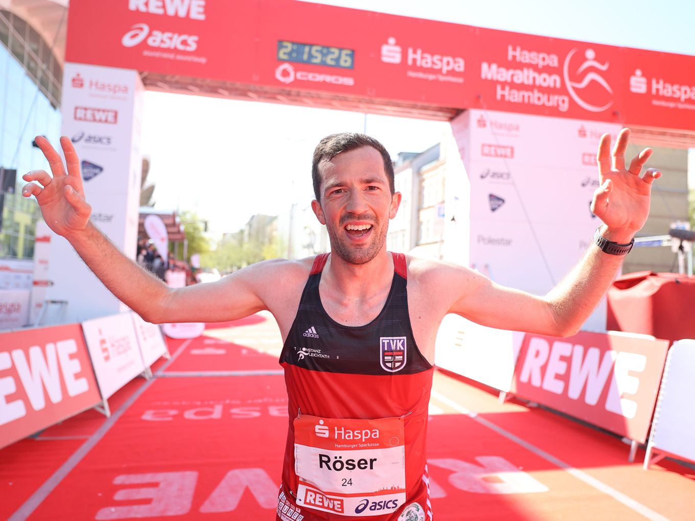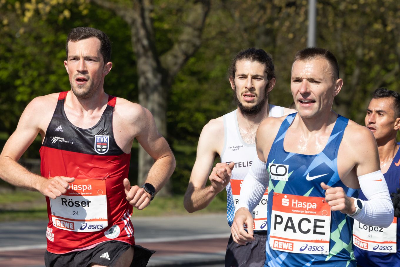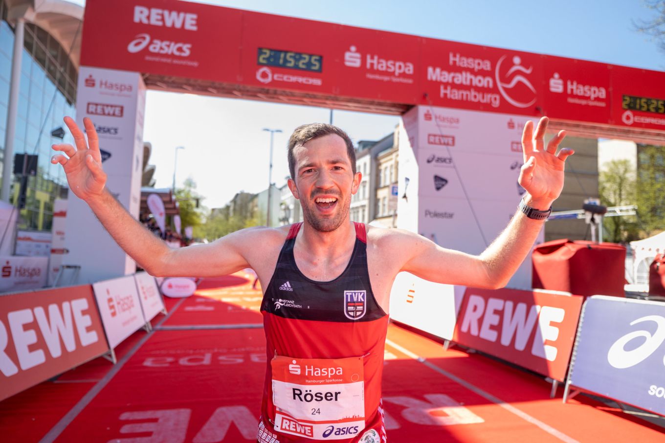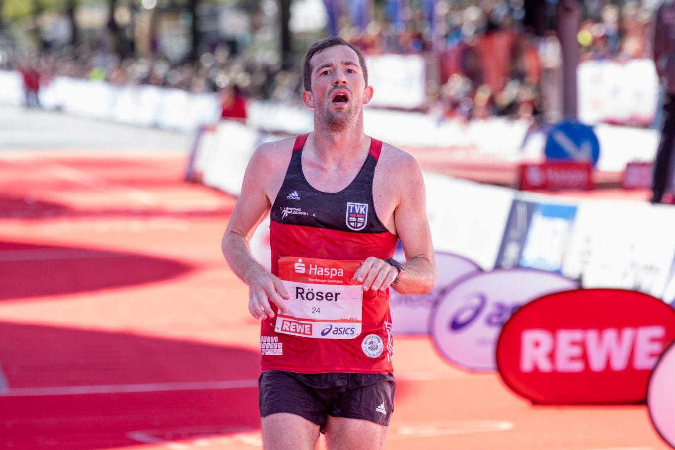 Überraschend kam Florian Röser als bester Deutscher nach 2:15:03 Stunden ins Ziel. Der Läufer vom TV Konstanz absolvierte in Hamburg sein Marathon-Debüt. Nachdem Philipp Pflieger (SCC Berlin) mit Rückenproblemen nach gut 30 Kilometern aus dem Rennen gegangen war und auch Johannes Motschmann (SCC Berlin) muskuläre Probleme hatte, konnte Röser die beiden erfahreneren Läufer hinter sich lassen.
