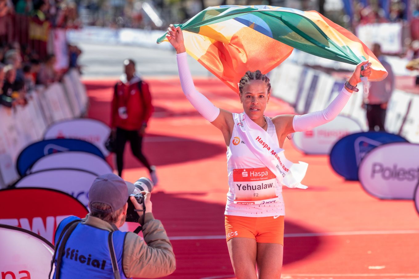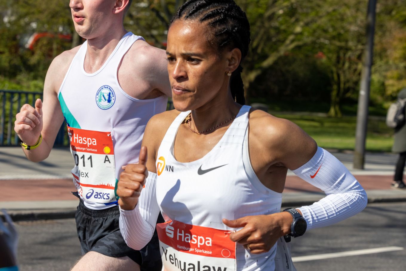 Die große Favoritin Yalemzerf Yehualaw (Äthiopien) und Cybrian Kotot (Kenia) bei den Männern, der auf der Zielgeraden Stephen Kissa (2:04:48 h/Uganda) in Schach hielt, sind die Marathon-Sieger in der Hansestadt.