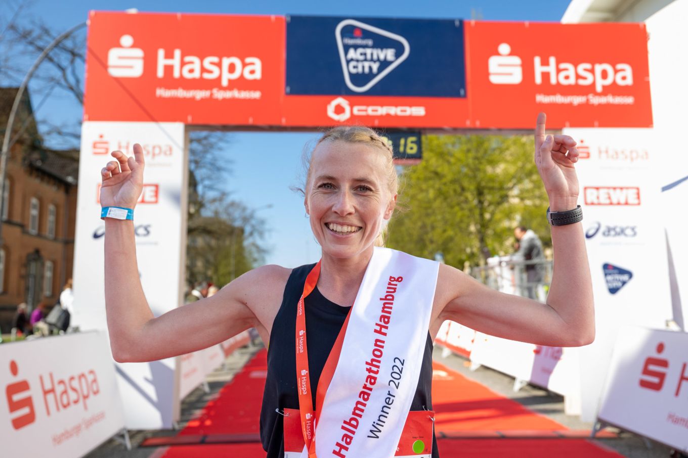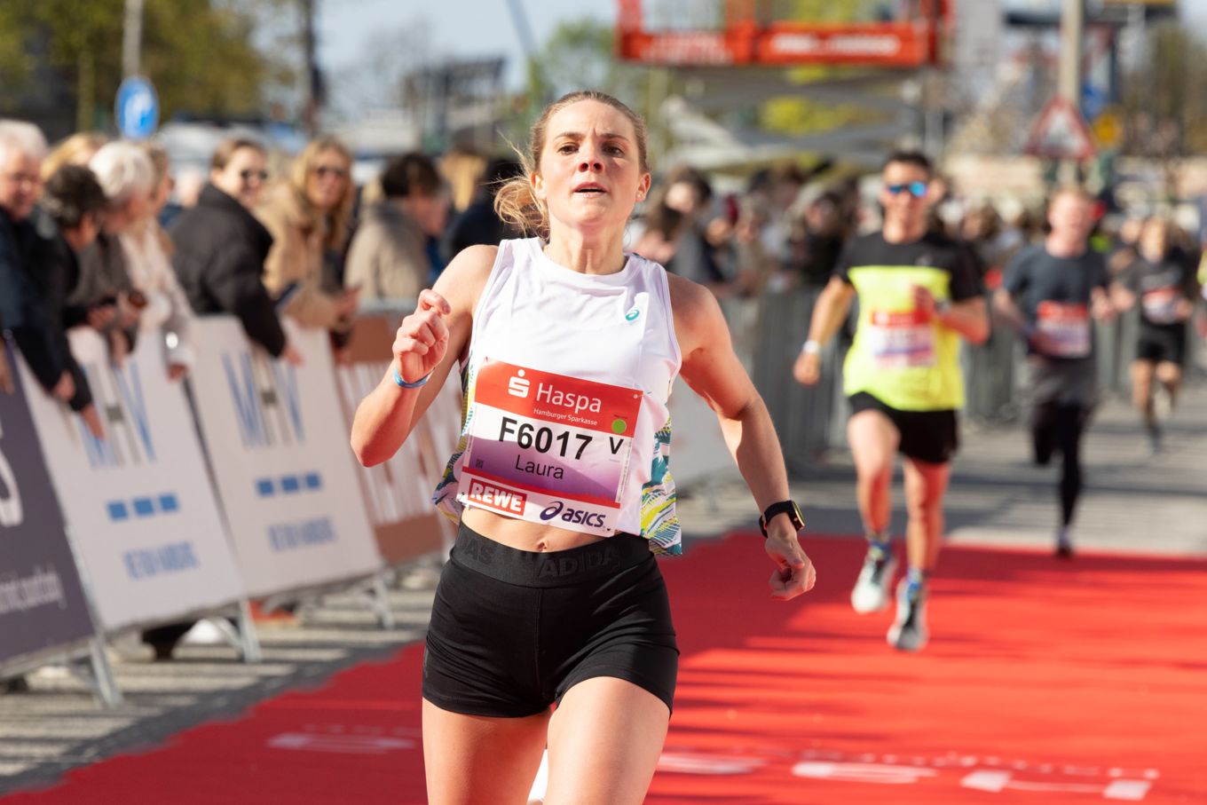 2021 war sie ihren ersten Marathon in Essen (2:27:31 h) – in Hamburg kämpfe sie bis zum letzten Meter, um diese Zeit zu unterbieten. „Ich war sehr fokussiert, der Wind war teilweise stark, aber ich habe einfach nur versucht, meinen Tempomachern zu folgen.“ Das hat gut funktioniert: um genau zwei Sekunden unterbot sie ihre Bestzeit.