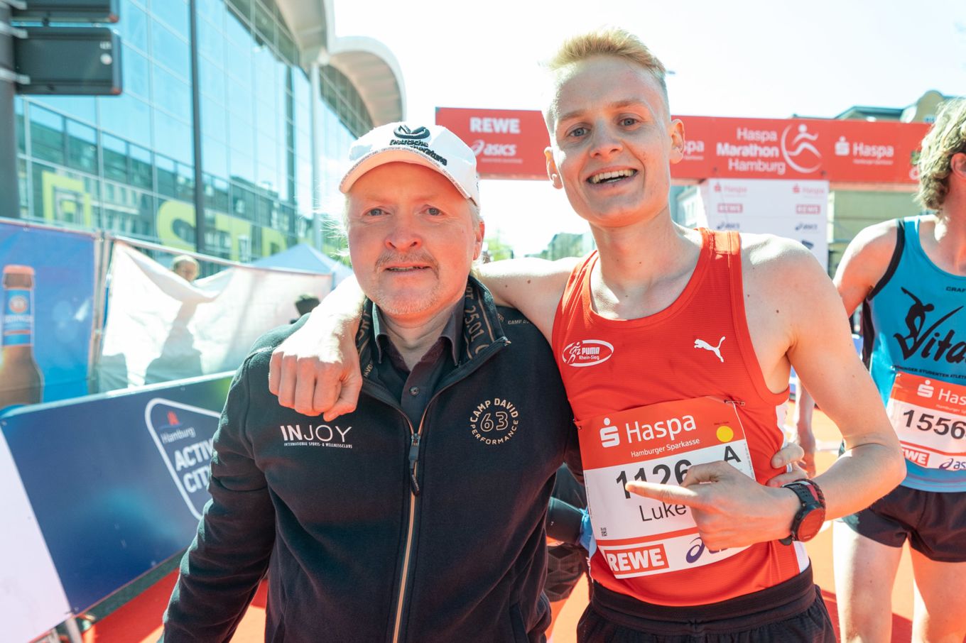 „Johannes tauchte plötzlich vor mir auf, ich wusste aber gar nicht genau, an welcher Stelle ich lag“, sagte Florian Röser. Sein Ziel, die EM-Norm (2:14:30 h) zu unterbieten, verfehlte der Debütant nur knapp. Der 29-Jährige war 2021 Sechster der Halbmarathon-DM in 63:11 Minuten. Danach entstand der Gedanke, es auch mal auf der Marathon-Distanz zu versuchen.