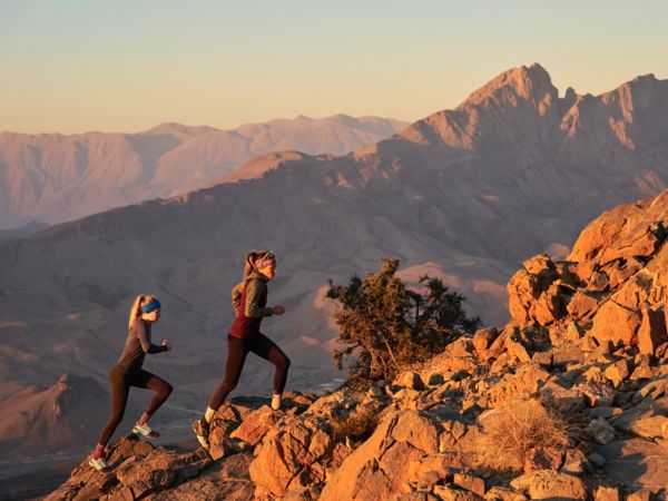 Zwischen den entlegenen Bergdörfern gibt es ein Netz von Bergpfaden, gut markiert mit gelb weiß roten Streifen. Die Wege W25, W24B und W24A führen etwa von Wakan nach Hadash und lassen sich zu einem Loop verbinden - tolle Ausblicke auf die Gubrah Bowl und die umliegenden Wadis, arabisch für Täler oder Schluchten, inklusive. Vom kurzen Lauf von rund 5 Kilometern und 200 Höhenmetern, oder eine etwas längere Runde von 16 km und 2200 Höhenmetern ergeben sich hier unterschiedliche Strecken. Dabei benötigen die technischen Bergtrails auch mal eine Hand am Fels und unbedingt Trittsicherheit, dafür belohnen tolle Aussichten vom Rand des Gebirgskessels.