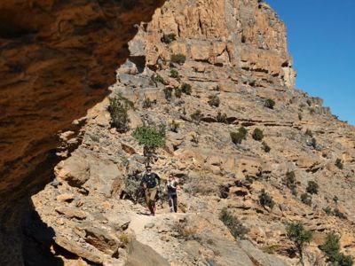 Gut markierte Bergpfade verbinden die Dörfer im Oman