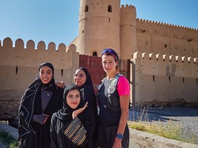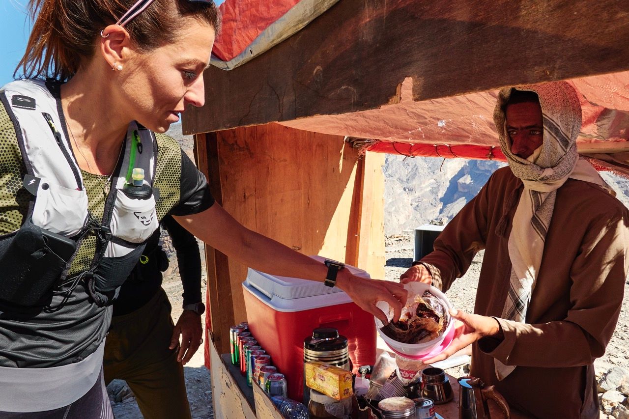 Die Omanis sind ein gastfreundliches Volk, das meist eher zurückhaltend ist, aber mitunter neugierig auf uns zugeht. Mit unseren bunten Trailrunning-Klamotten stechen wir bei den eher traditionell gekleideten Einheimischen wohl eher als Kuriositäten heraus. Mal wollen uns junge Studentinnen, klassisch in bodenlangem schwarzen Gewand, für ein Studienprojekt portraitieren. Von Trailrunning hatten sie noch nie etwas gehört.