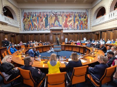 In Hannover ist schon die Eröffnungspressekonferenz zum Marathon-Wochenende etwas ganz Besonderes: Pressevertreter, Veranstalter, Förderer und Athletinnen und Athleten treffen sich im geschichtsträchtigen Hodlersaal des hannoverschen Rathauses. Dort, wo 1950 der Deutsche Sportbundes gegründet wurde. Dabei war auch die Sport- und Kulturdezernentin der Stadt voller Vorfreude auf „ein gesellschaftliches Ereignis weit über den Sport hinaus, das eine ganze Stadt in Bewegung bringt“, wie Konstanze Beckedorf betonte „Hannover ist die Marathonstadt, und wir freuen uns, mit dem Rathaus und dem Hodlersaal einen ganz besonderen Rahmen für eine ganz besondere Veranstaltung stellen zu dürfen.“