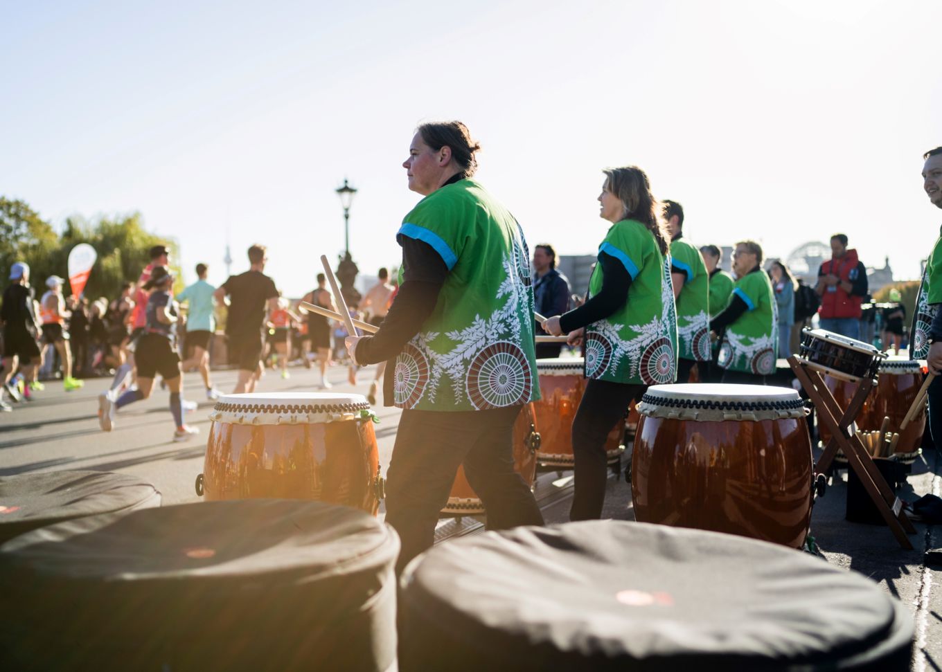 Was zunächst wie eine Übertreibung klingt – normalerweise beschränkt sich die Musik bei Großevents auf einen DJ mit den neuesten Charts – wird beim BMW Berlin-Marathon jedes Jahr zur Realität. Wenn am 21. September mehr als 50.000 Läuferinnen und Läufer durch Berlin rennen, traben oder gehen, findet parallel ein zweiter Marathon statt – allerdings nicht auf der Straße, sondern am Straßenrand. Ein Klangmarathon aus Trommeln, Bläsern, Gitarrenriffs, Jazzakkorden und Samba-Rhythmen sorgt für das kleine Extra an Motivation auf dem langen Weg zum Ziel. Berlin läuft. Berlin klingt. Die Live-Musik ist längst ein fester Teil der Berliner Marathon-Kultur geworden.