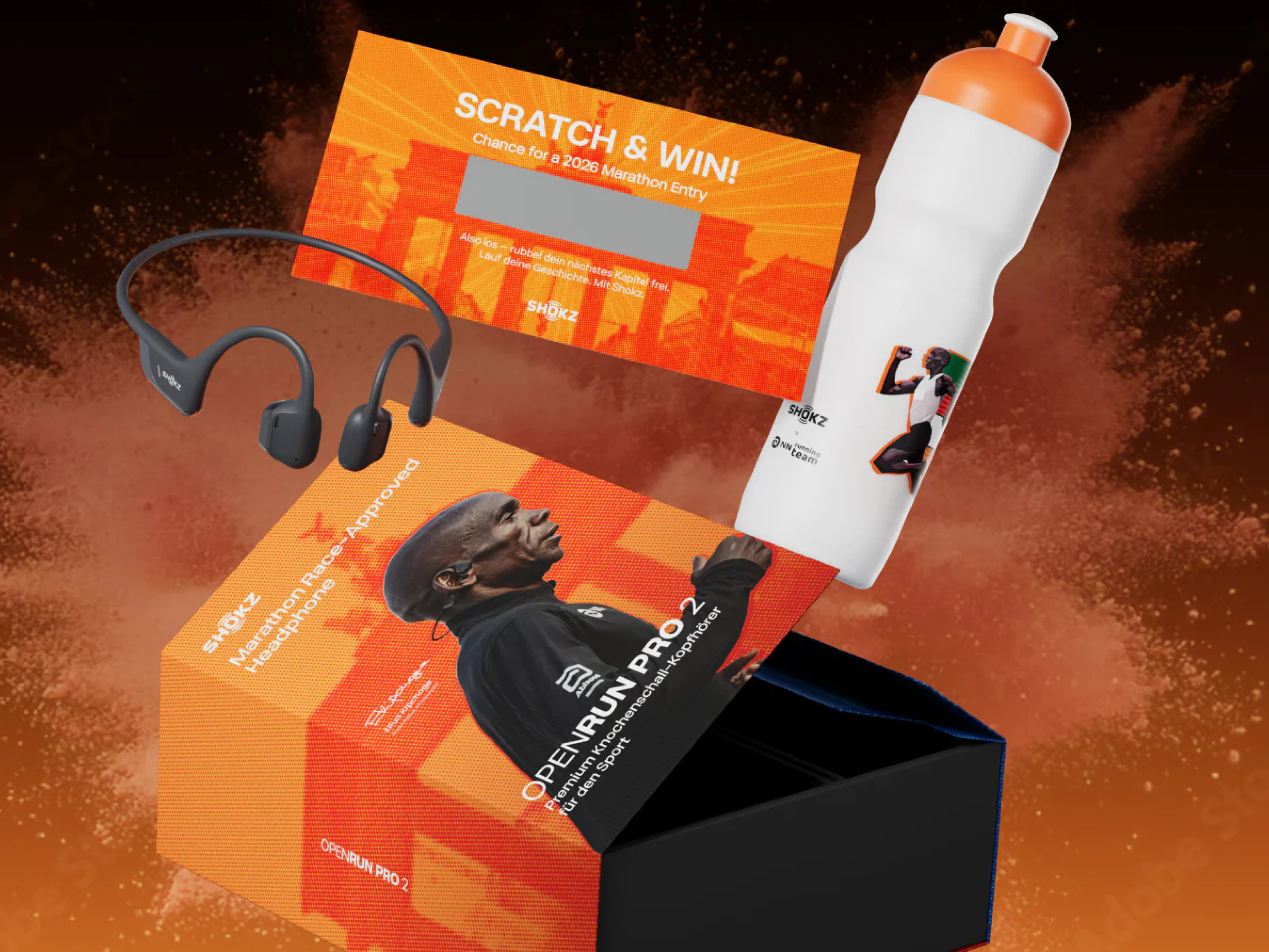 Die Mystery Box von Shokz kann man nur noch bis Sonntag kaufen. Für 199 Euro gibt’s einen OpenRun Pro 2 Kopfhörer, eine gemeinsam mit Kipchoge entwickelte Sportflasche und ein Rubbellos. Alle registrierten Mitglieder von laufen.de haben aber auch noch bis zum BMW Berlin-Marathon am kommenden Sonntag die Chance, die Box zu gewinnen. Der Clou dabei: Die Box enthält ein Rubbellos, mit dem es folgende exklusiven Preise zu gewinnen gibt: Eine Marathon-Startnummer für 2026 in Berlin, London, Paris oder Chicago, einen von Eliud Kipchoge signiertes Shokz OpenRun Pro 2 oder eine von Kipchoge signierte Laufweste. An dem Gewinnspiel können wie immer auf laufen.de nur registrierte Mitglieder teilnehmen. Einsendeschluss ist der 21. September 2025.