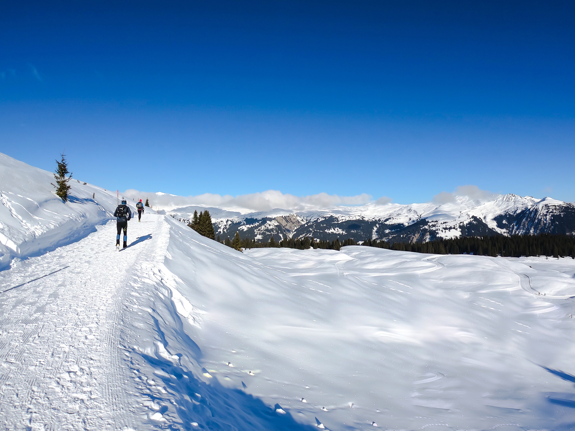 Da laufen, wo andere Ski fahren. Verrückt? Ja, aber im schweizerischen Arosa macht das Laufen auf Pisten und im Tiefschnee vor der Alpenkulisse vor allem Spaß. Stefan Schlett hat’s ausprobiert.