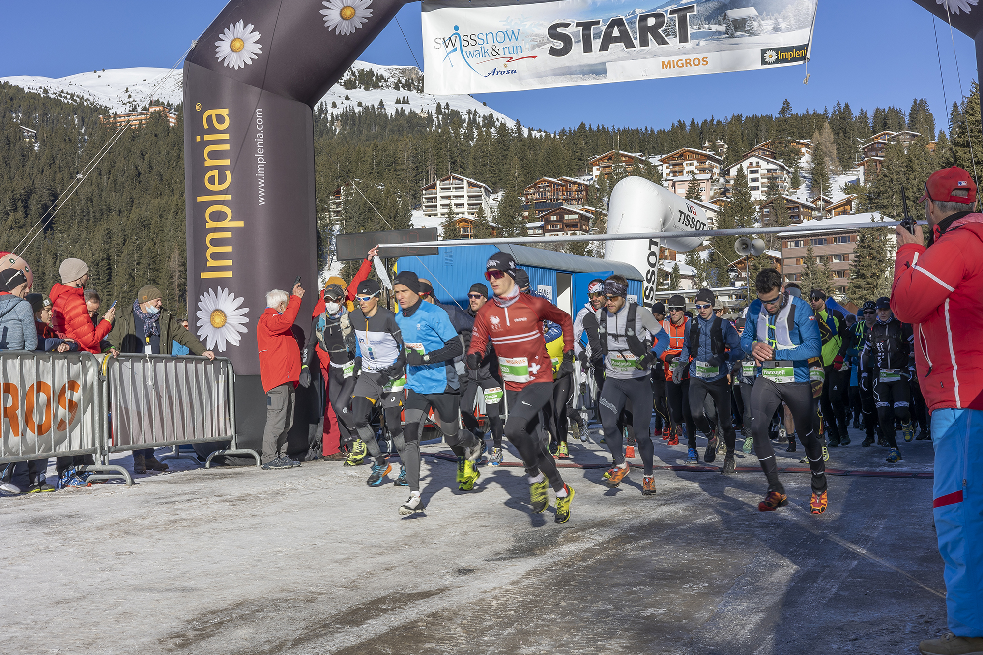 Das sprichwörtliche Kaiserwetter herrschte in Arosa zur 18. Auflage des Swiss Snow Walk & Run am 15. Januar 2022. Ursprünglich als Walking-Event konzipiert, wurden im Jahre 2009 erstmals Testläufer zugelassen. Der Reiz, im 1700 Meter hoch gelegenen Arosa durch eine tief verschneite Berglandschaft zu rennen, lockte in der Folgezeit immer mehr Läufer aus dem In- und Ausland nach Graubünden. Mittlerweile stellen Läuferinnen und Läufer das Gros der Teilnehmer. Königsdisziplin unter den vier Wettbewerben zwischen 6.1 Kilometern und Halbmarathon ist der Weisshorn Snow Trail, ein reiner Berglauf, der über 16,8 Kilometer und 1185 Höhenmetern auf den Gipfel des 2653 Meter hohen Weisshorns führt, dem höchst erschlossenen Punkt im Skigebiet Arosa-Lenzerheide mit seinen 225 Pistenkilometern.