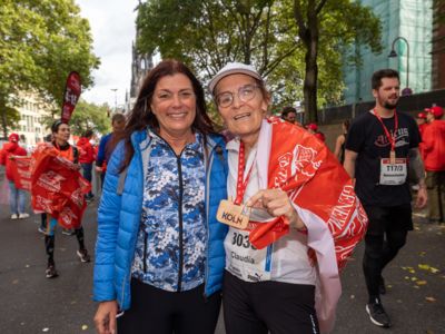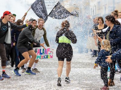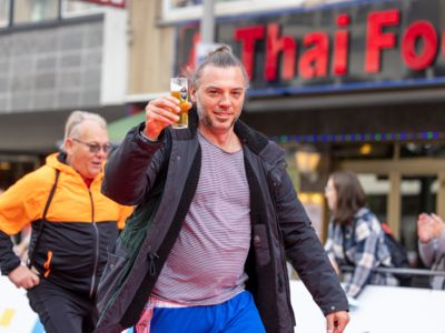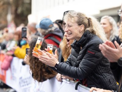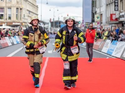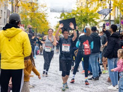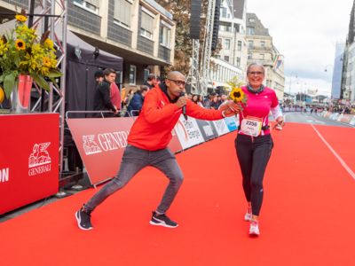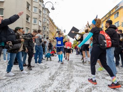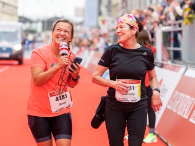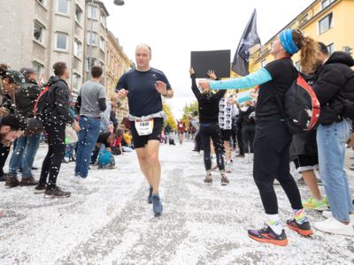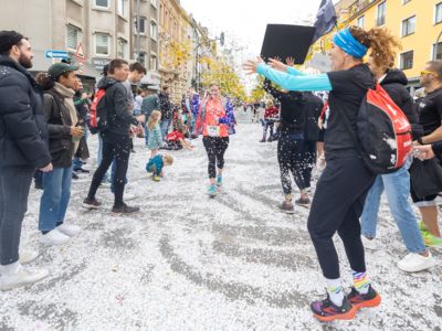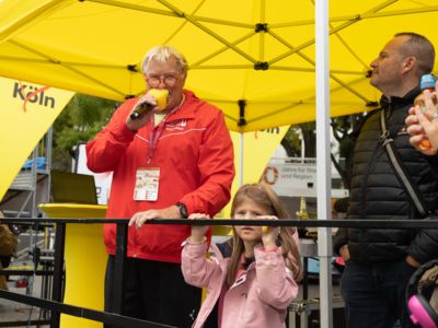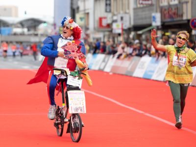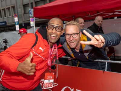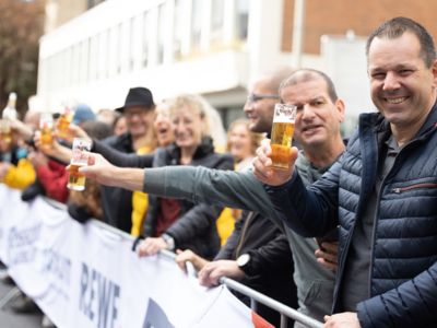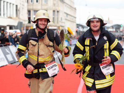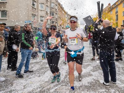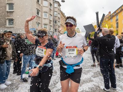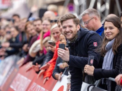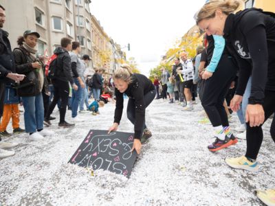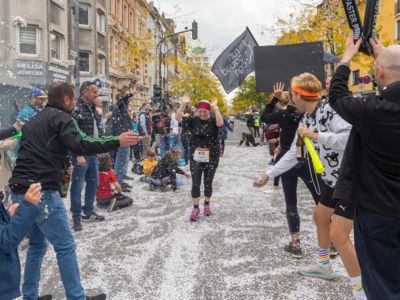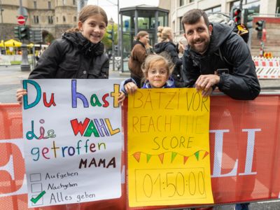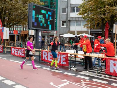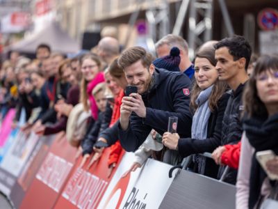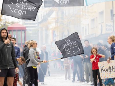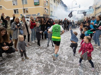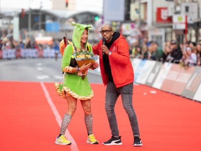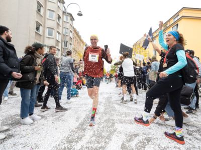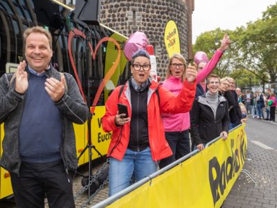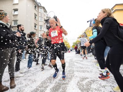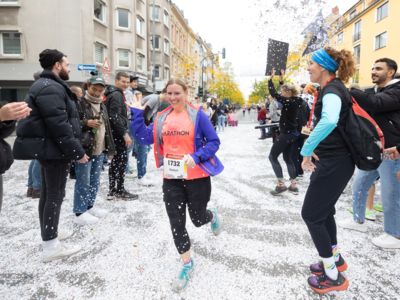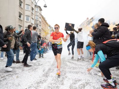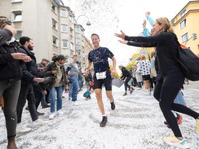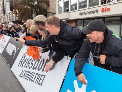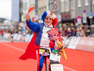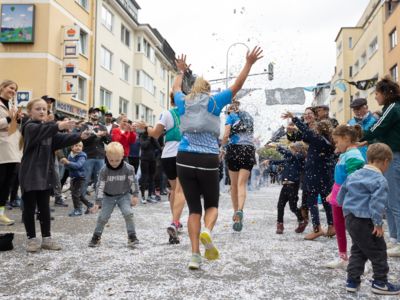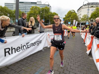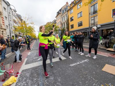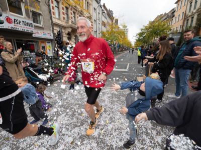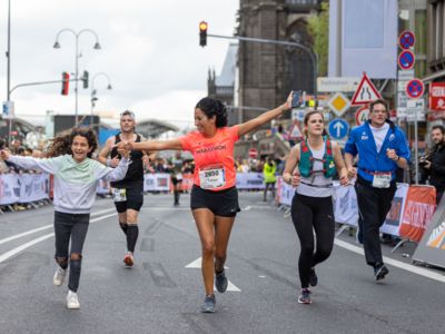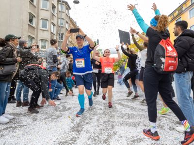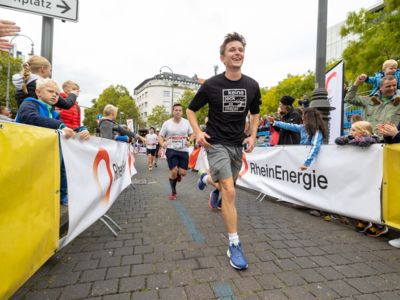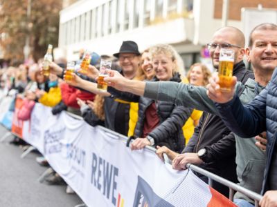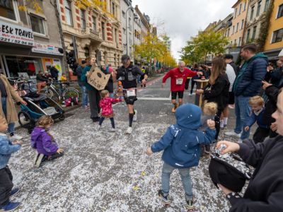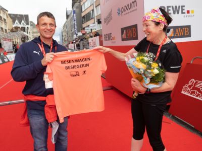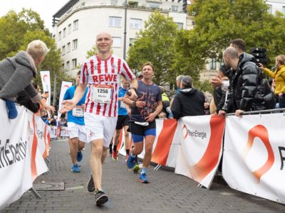 Nicht nur die Läuferinnen und Läufer, sondern auch die Zuschauerinnen und Zuschauer feierten eine 42,195 Kilometer lange Party. Unter lautem Gekreische und Gejohle wurden hier jede Teilnehmerin und jeder Teilnehmer wie Champions gefeiert. Sogar der letzten Teilnehmerin des Marathons, die vor dem Besenwagen das Ziel erreichte, wurde von Racedirector Markus Frisch ein Blumenstrauß und ein knallrotes T-Shirt mit der Aufschrift „Besenwagenbesiegerin“ überreicht. Besonders in der Südstadt am Severinstorbogen und auf der Severinstraße war die Stimmung grandios. Aber auch auf dem Rudolf- bis zum Friesenplatz hatte sich ein Meer von Menschen gebildet, die es sich nicht nehmen ließen, die Läuferinnen und Läufer mit ihren Jubelrufen in Richtung Ziel zu peitschen. Ein Feeling wie in Alpe d’Huez war hier vorprogrammiert.