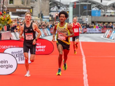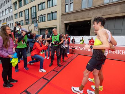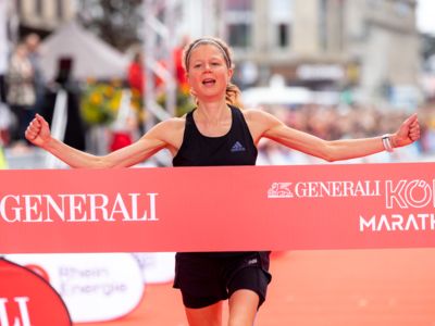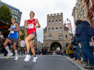 Esther Jacobitz dagegen drehte in ihrem ersten großen Straßenlauf noch einmal auf und zog das Tempo bis ins Ziel durch. „Es hat richtig Spaß gemacht, vor so vielen Zuschauern zu laufen, die meinen Namen gerufen haben“, schwärmt die 1500-Meter-Spezialistin von dem Rennen durch ihre Heimatstadt, vor dem sie noch zwei Tage lang auf der Marathonmesse am Stand von Bunert, dem Kölner Laufladen, gearbeitet hatte. Einen kompletten Wechsel von der Bahn zur Straße plant die 25-Jährige allerdings noch nicht. Möglicherweise wird es aber künftig von den 1500 eher in Richtung 5000 Meter auf der Bahn gehen. „Auf den längeren Strecken sehe ich jetzt mehr Potenzial“, meinte die Athletin, die beim ASV Köln in der starken Laufgruppe von Coach Moritz Elze trainiert.