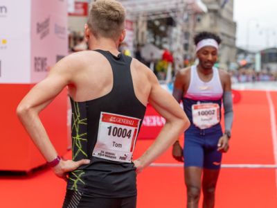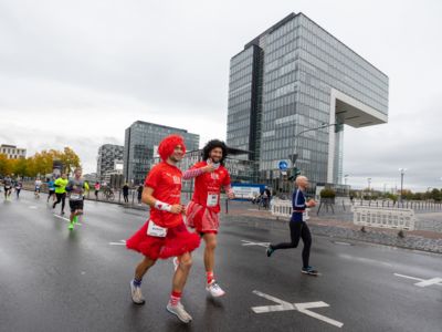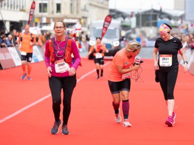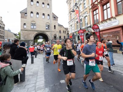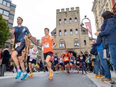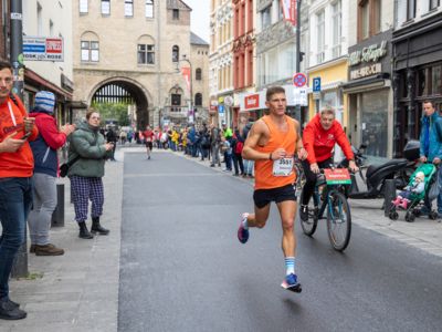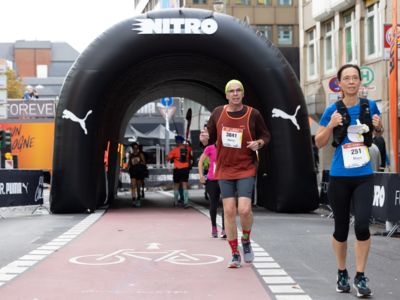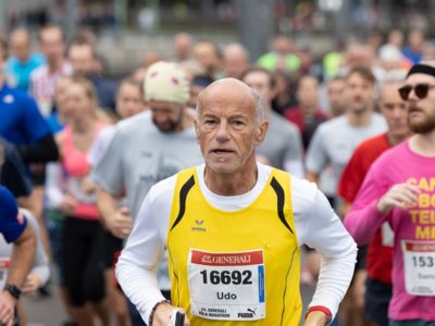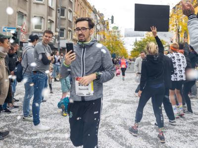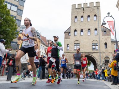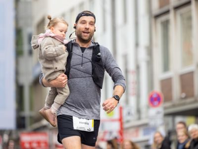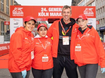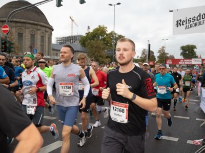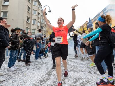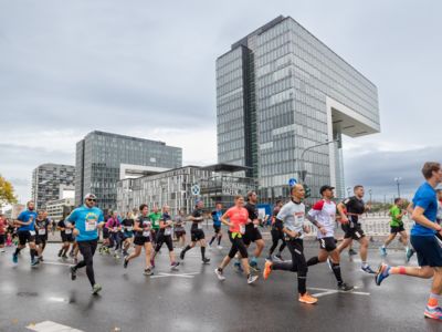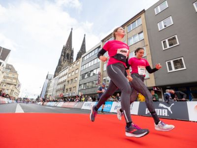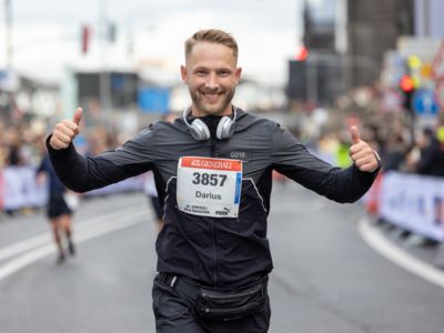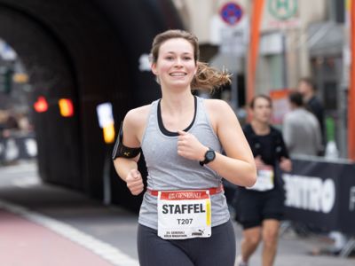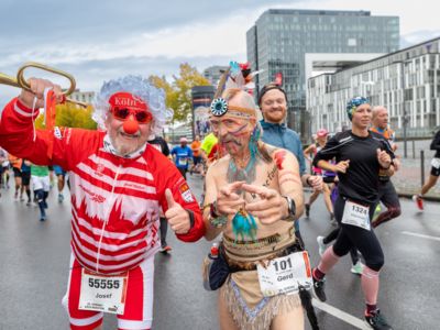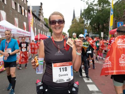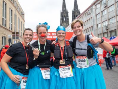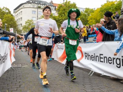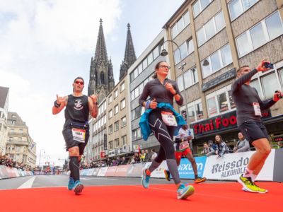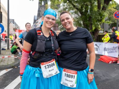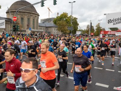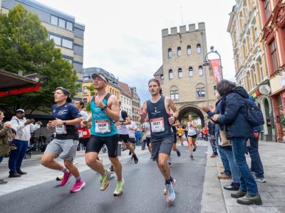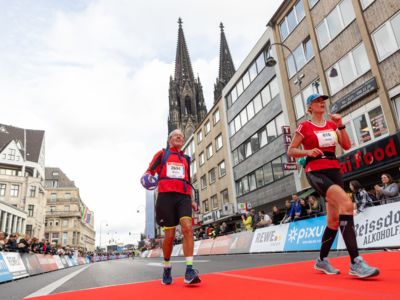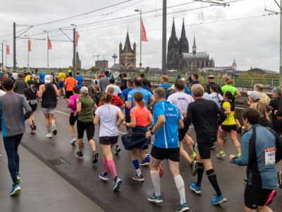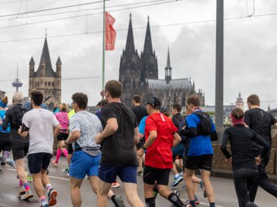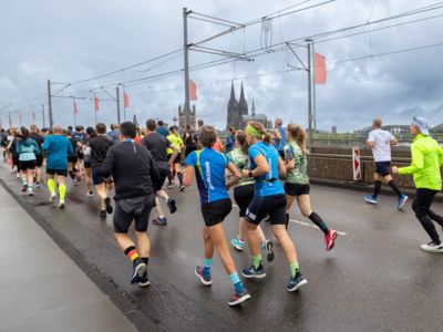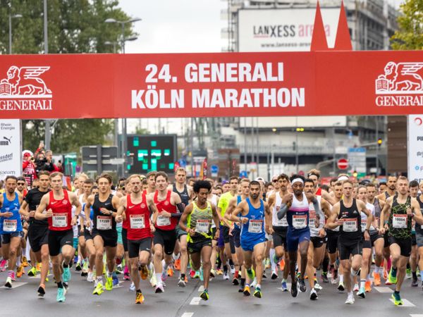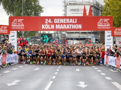 Pünktlich um 8:30 Uhr fiel in Köln-Deutz auf dem Ottoplatz der Startschuss für die Halbmarathondistanz. Eineinhalb Stunden später wurden die Marathonis ebenfalls auf dem Ottoplatz auf die Strecke geschickt. Der Generali Köln Marathon überzeugte mit einer schnellen, abwechslungsreichen Strecke vorbei an zahlreichen touristischen Highlights. Bereits nach dem ersten Kilometer gab es auf der Deutzer Brücke das Postkartenpanorama mit Blick auf den Kölner Dom und die Altstadt zu sehen. Die Strecke führt quer durch Köln zum gemeinsamen Ziel, dem Wahrzeichen von Köln, dem Kölner Dom. Bereits vor dem Start war die Stimmung geradezu euphorisch. Zu rhythmischen Beats wurde sich auf das Rennen eingestimmt. Die letzten Bananen wurden verspeist und ein paar Gruppenfotos wurden gemacht. An der Startlinie waren schließlich einige Läuferinnen und Läufer in bunten Kostümen zu erkennen. Die Freude und der Enthusiasmus unter den Teilnehmerinnen und Teilnehmern war geradezu spürbar.