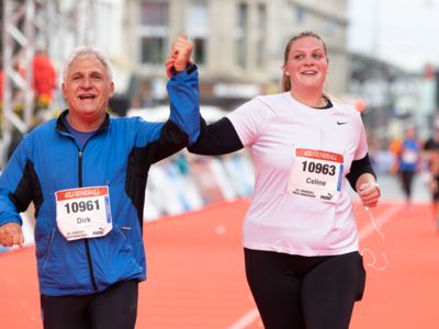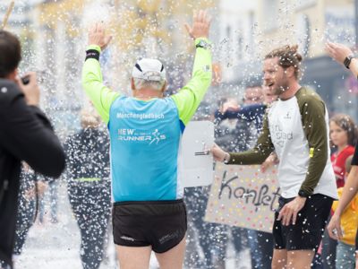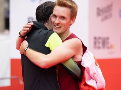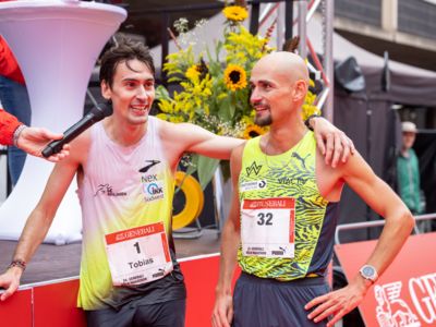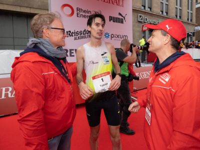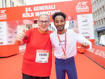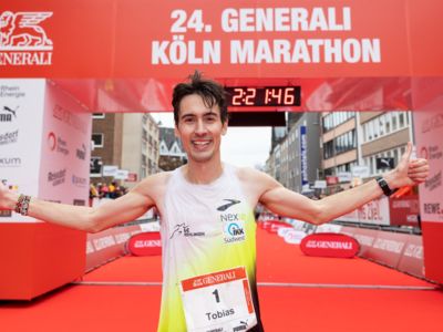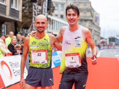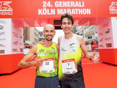 Und Hendrik Pfeiffer, der für seinen Freund beim letzten Rennen bis ins Ziel Tempo gemacht hatte, freute sich mit: „Es war toll, mit ihm gemeinsam auf dem Siegerpodest zu stehen." Eigentlich wollte er nur bis irgendwo jenseits der 30 Kilometer den Pacemaker für Tobias Blum machen, aber dann lief es so gut, dass er bis ins Ziel lief. „So hat der Köln-Marathon nicht nur Spaß gemacht, sondern war auch noch einmal ein gutes Training für meinen Start beim New York-Marathon Anfang November."