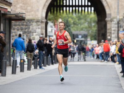Der Rehlinger Tobias Blum (LC Rehlingen) konnte die 42,195 Kilometer lange Distanz für sich entscheiden. Nach 2:16:25 Stunden kam er wenige Sekunden vor dem amtierenden Deutschen Marathonmeister Hendrik Pfeiffer (TV Wattenscheid 01) ins Ziel. Dritter wurde der Australier Russel Dessaix-Chin in 2:26:35 Stunden. „Es hat mir wieder wahnsinnig Spaß gemacht, durch Köln zu laufen. Dass ich das Rennen noch gewinnen konnte, rundet einen perfekten Tag ab“, freut sich der Marathonsieger über seine neue Bestzeit.