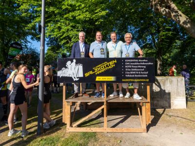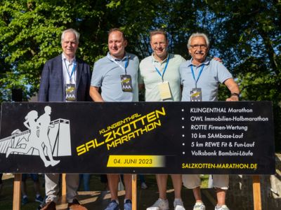Aber nicht nur am Veranstaltungstag ging es in Salzkotten heiß her. Das Organisationsteam um Sascha Wiczynski haben bereits vor dem Event ein tolles Programm auf die Beine gestellt. So fanden am Votrtag des Marathonsonntags ein „Shake out Run“ mit Laufcoach Stefan Heinrichsmeier sowie die beliebte Pasta-Party an der Ölmühle statt. Am Eventtag heizten die Cheerleader des TSV Tudorf den Läuferinnen und Läufern ein und peitschten sie mit ihren Jubelrufen ins Ziel. Nach der Zielankunft wartete auf die Läuferinnen und Läufer im Nachzielbereich eine Entspannungsoase. Dort konnten sich die Teilnehmerinnen und Teilnehmer verpflegen, den Massage-Service in Anspruch nehmen und den Lauf entspannt ausklingen lassen. Im Außenbereich der Sälzerhalle fanden parallel zum Marathon die Bambini-Läufe statt. Das Kinder-Aufwärmprogramm mit dem „Zappeltier“- dem Maskottchen der AG Radfahrsicherheit - sorgte bei den Kindern für Unterhaltung.