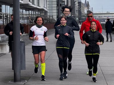 Am 8. und 9. Februar 2025 trafen sich die sechs Challenger Melanie Behringer, Mun Yee Cheung, Kerstin Manns, Ruslan Abildinov, Alex Koerfer und Mathias Preissler, die aus über 350 Bewerbern und Bewerberinnen ausgelost wurden, zu einem Vorbereitungswochenende mit laufen.de und Magnesium Diasporal in Köln. Andrea Beringer, Leiterin Public Relations, begrüßte die Teilnehmer:innen gemeinsam mit ihrer Kollegin Stefanie Schwenda, die das Thema Social Media verantwortet, ganz herzlich.