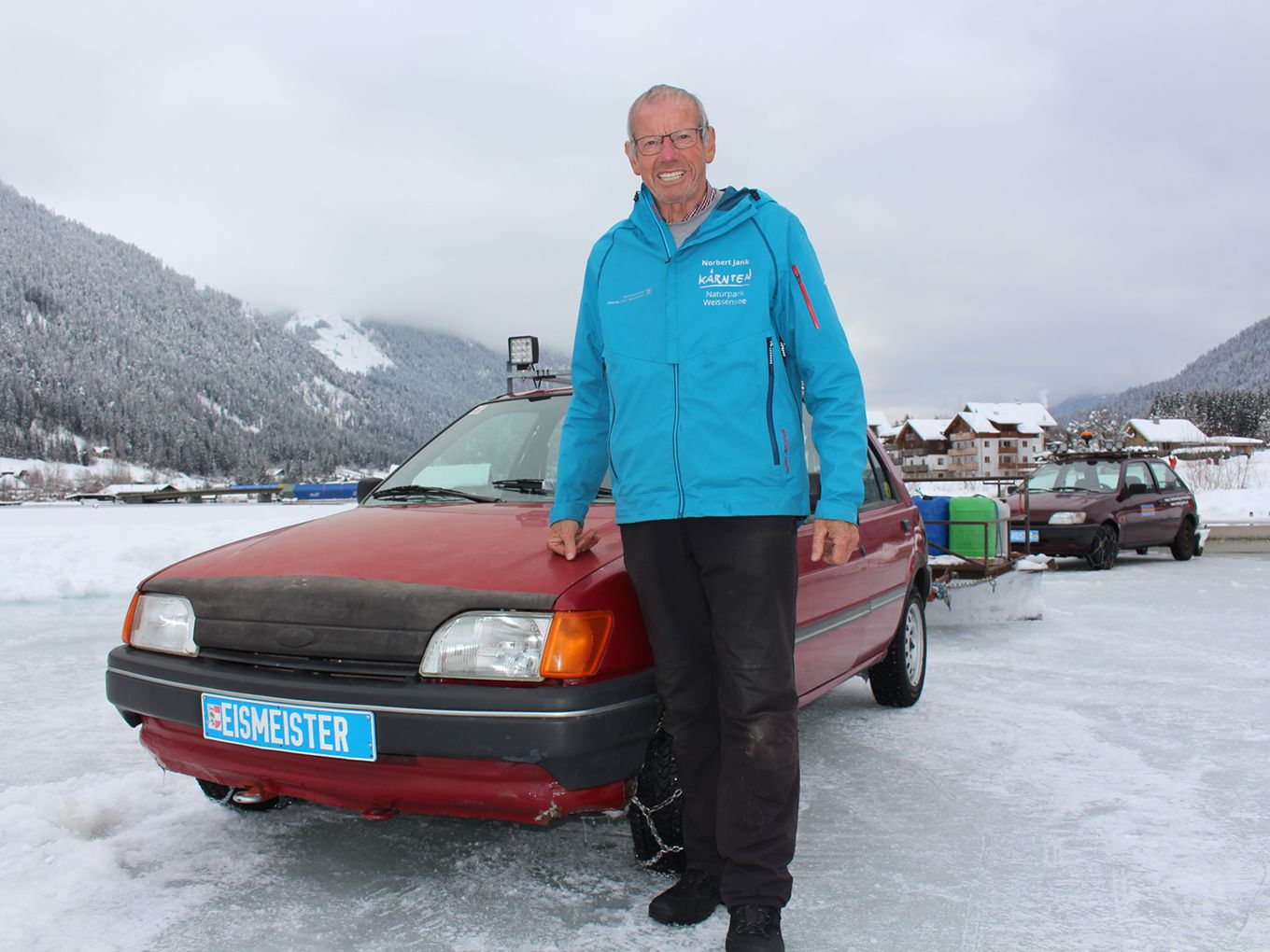 Eismeister Norbert Jank (76 Jahre) und sein Team sind für die Eispflege, Präparierung der Pisten und die Sicherheit auf dem Eis verantwortlich
