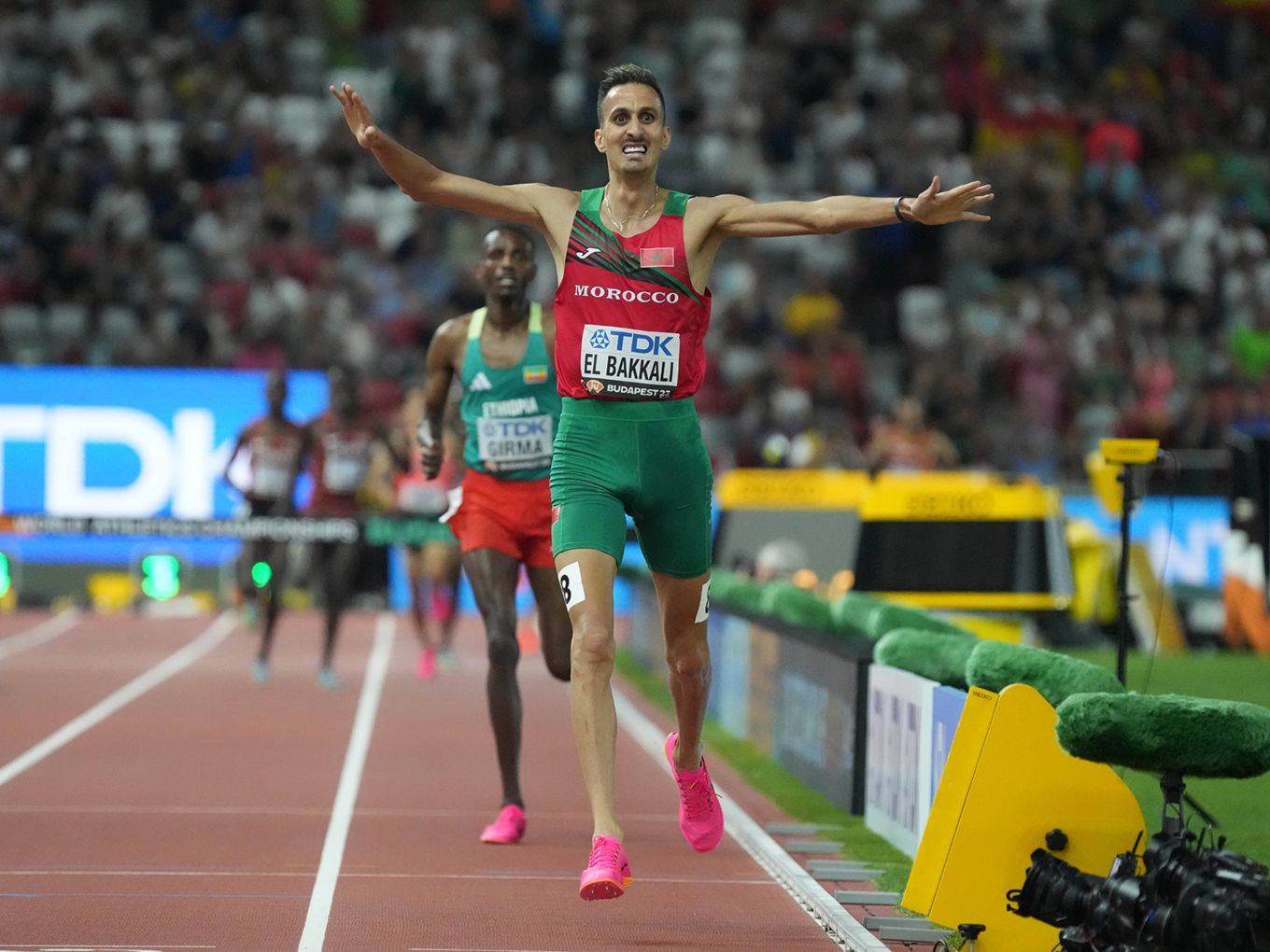 Im Finale über 3000 Meter Hindernis hatte sich der äthiopische Weltrekordler Lamecha Girma (7:52,11 min) bald nach der Hälfte der Distanz an die Spitze gesetzt. Nach und nach fiel ein Läufer nach dem anderen aus der Spitzengruppe zurück, doch einen wurde Lamecha Girma nicht los: Der marokkanische Titelverteidiger und Olympiasieger Soufiane El Bakkali war es dann, der am letzten Wassergraben an dem Äthiopier vorbeilief und sich in 8:03,53 Minuten eine weitere große Goldmedaille sicherte.