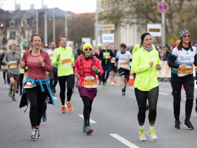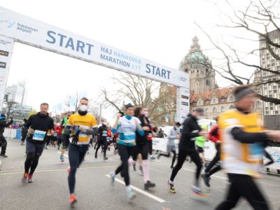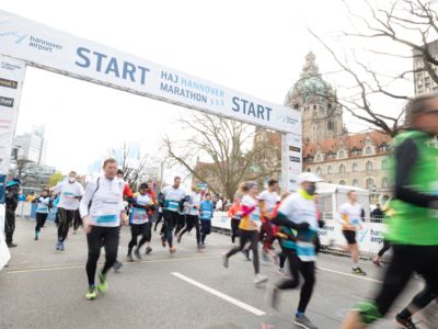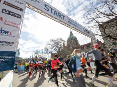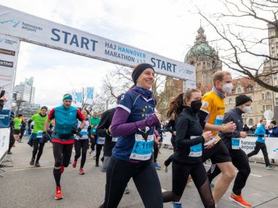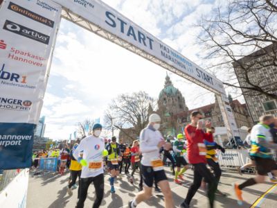 Über 18.000 Teilnehmerinnen und Teilnehmer waren bei kühlen Temperaturen, aber herrlichem Sonnenschein beim Restart des HAJ Hannover Marathon dabei.